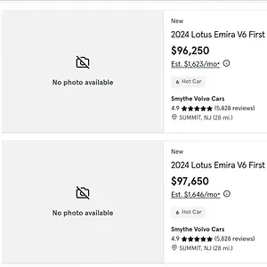 Out of boredom, I looked at Auto trader and cars.com to look to see if any used EMIRA's were listed for sale as of yet, and to my surprise I see 50 NEW Emira listed for sale starting at $97k.