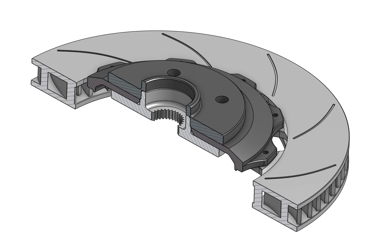 Section view applied to show you how the 12mm hubcentric spacer interfaces with the rotor hat face and the oem hub lip.