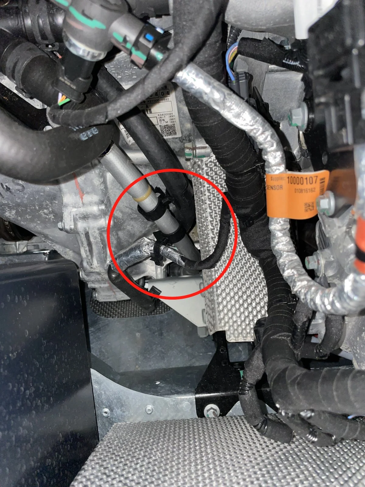 I was going to change the trans oil and put the Archoil in that too, but I just cannot see where the fill hole is. I've looked at the manual, the pictures others have shown of an Evora, and I don't see that. I stuck my phone in down there and took a picture hoping to see things better, but this is what I got. The area in the red circle is supposed to be where the fill hole is, but this looks like a mess. The trans is on the left side of the red circle, the engine is on the right. Even if by some chance the fill hole bolt is under those hoses, and I was able to remove it, I don't see me being able to get oil in there and thread the bolt back in.