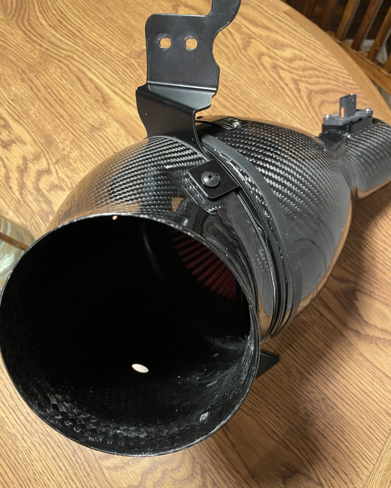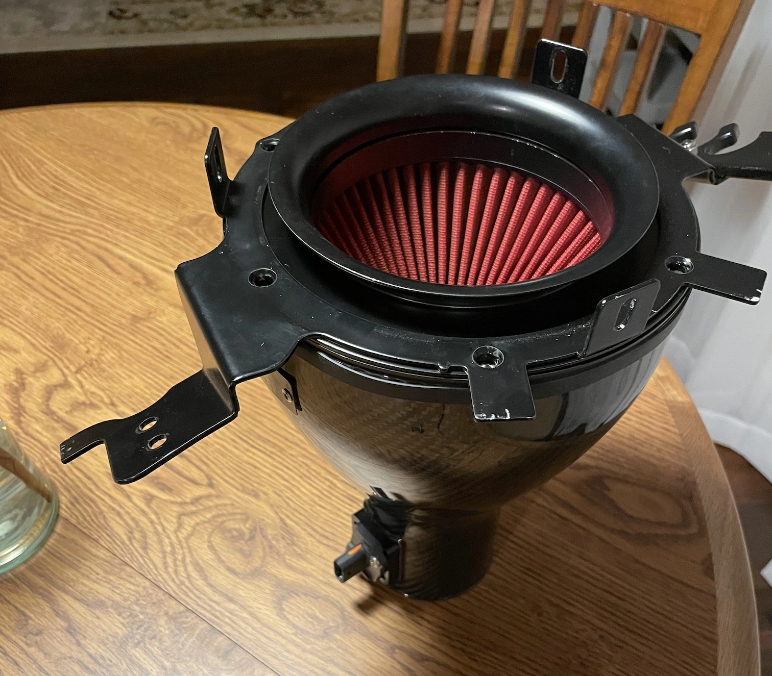 I've had my Eventuri air intake for about a year now, and I decided to clean the filter. There's no easy way to do it. You have to remove the entire unit from the car, which involves pulling the connecting tube from the supercharger inlet and the Eventuri, and disconnecting the MAF sensor.