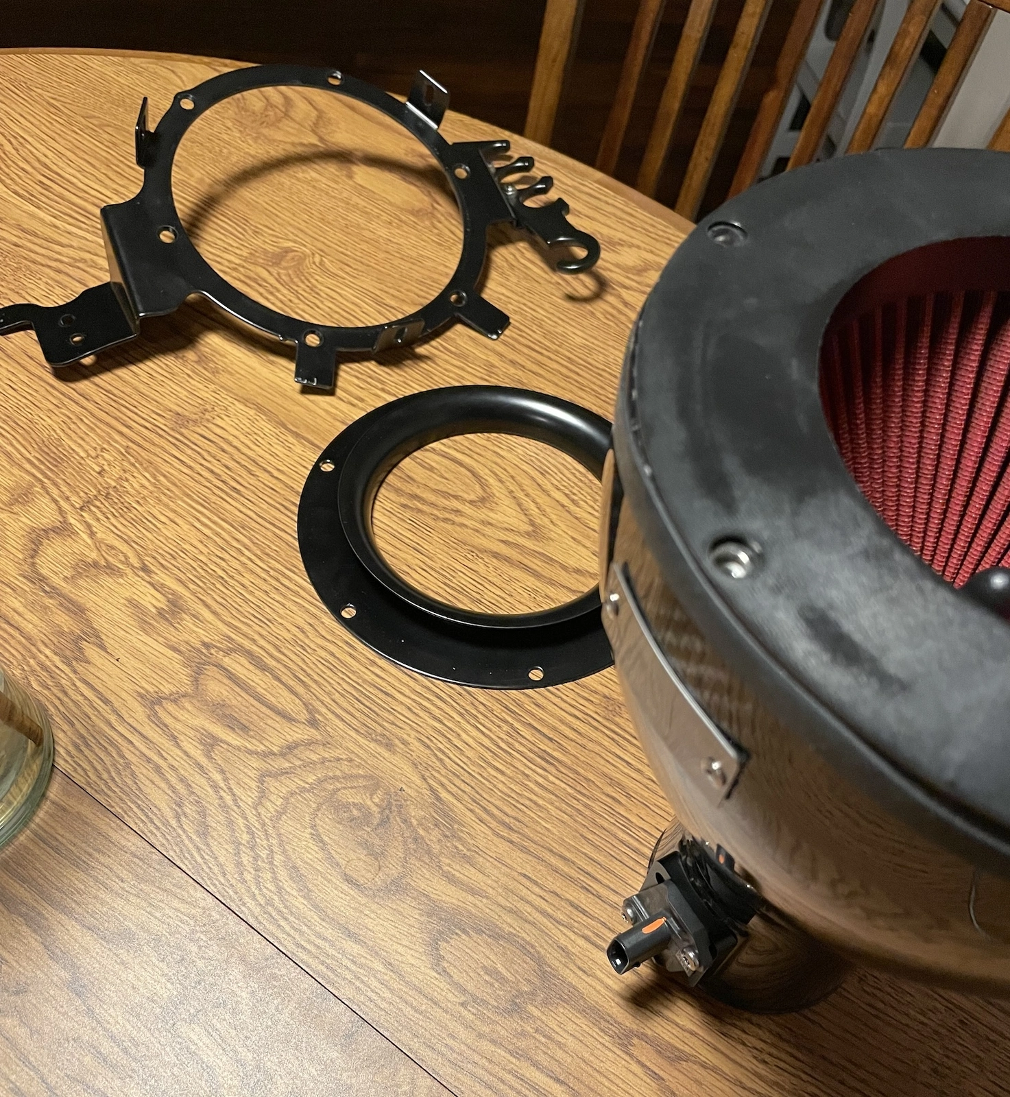 Once they're all in place, FINGER TIGHTEN them using a star pattern, going crosswise like you do lug nuts on a wheel. They only need to be snugged down finger tight, don't crank them down. Also, before you put the screws in, pay attention to the orientation of the mounting bracket (see picture below) so that the wire loom is below, and the tall bracket tab above is aligned with the MAF sensor.