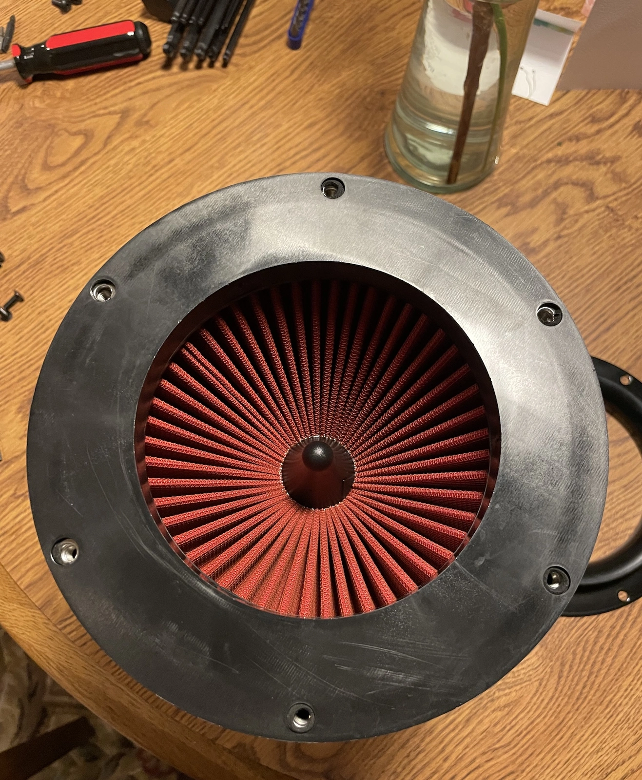 Reassembly is the opposite of the above procedure, however, if you removed the big rubber band that goes around the body, put that on first before you reassemble the filter pieces. Take care with that thin gasket between the filter and the body. When reassembling, MAKE SURE it clears the holes the screws go in before putting in a screw, because the screw will grab and twist it up otherwise (don't ask me how I know). Put the gasket, the filter, the collar ring and the mounting bracket all on top of each other first, then put the screws in. I kept everything slightly loose, so I could lift the filter edge just enough as needed, and used a small allen wrench inside the hole to push the edges of the gasket out of the way of the screw hole. Once it's out of the way (you may need to do this for each of the 6 holes), lower the filter to hold it in place long enough to get a screw threaded. Don't tighten any of them down until all of them are threaded.