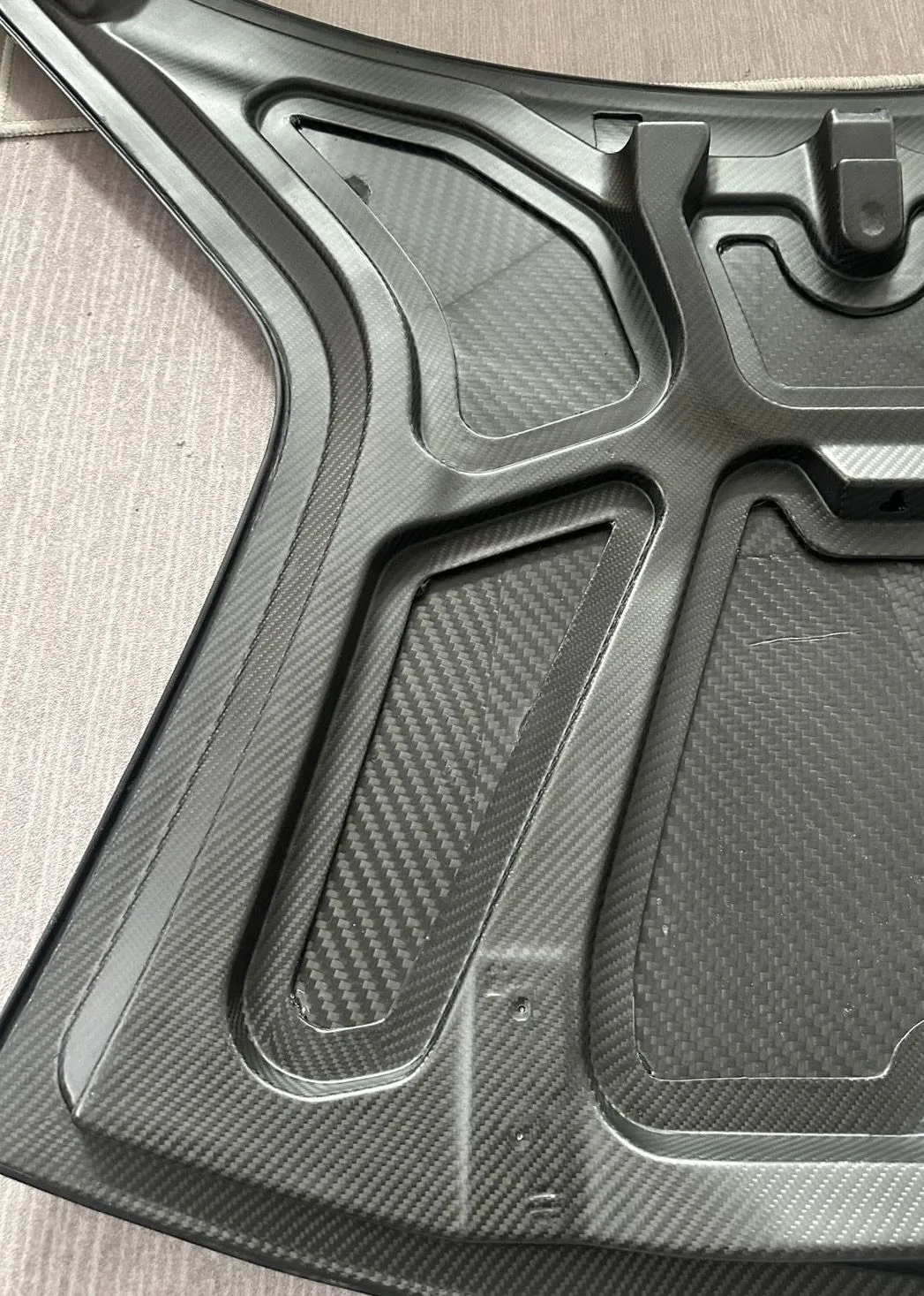 Here is an example of the matte carbon finish on the inside of a prototype hood Aerie is working on.