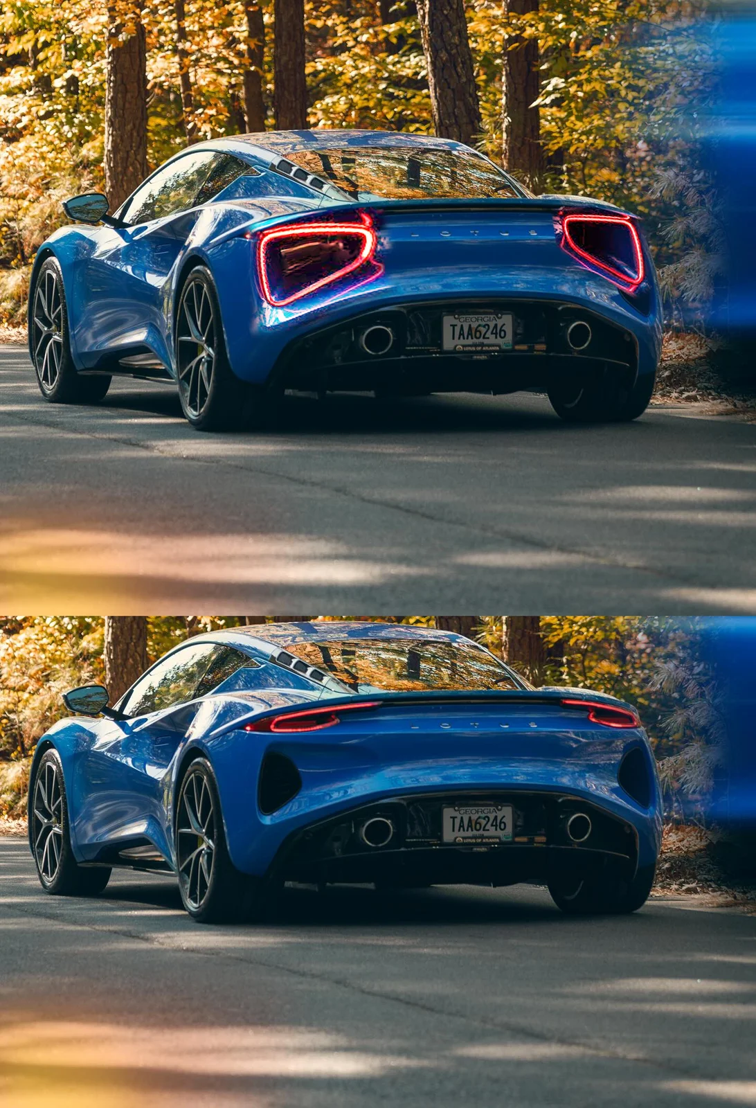 I think the emira designers got it right. At first I was disappointed with the lack of round taillights like evoras of the past but as I live with the car- all the design from interior to exterior is totally cohesive including the rear.just regular PS.