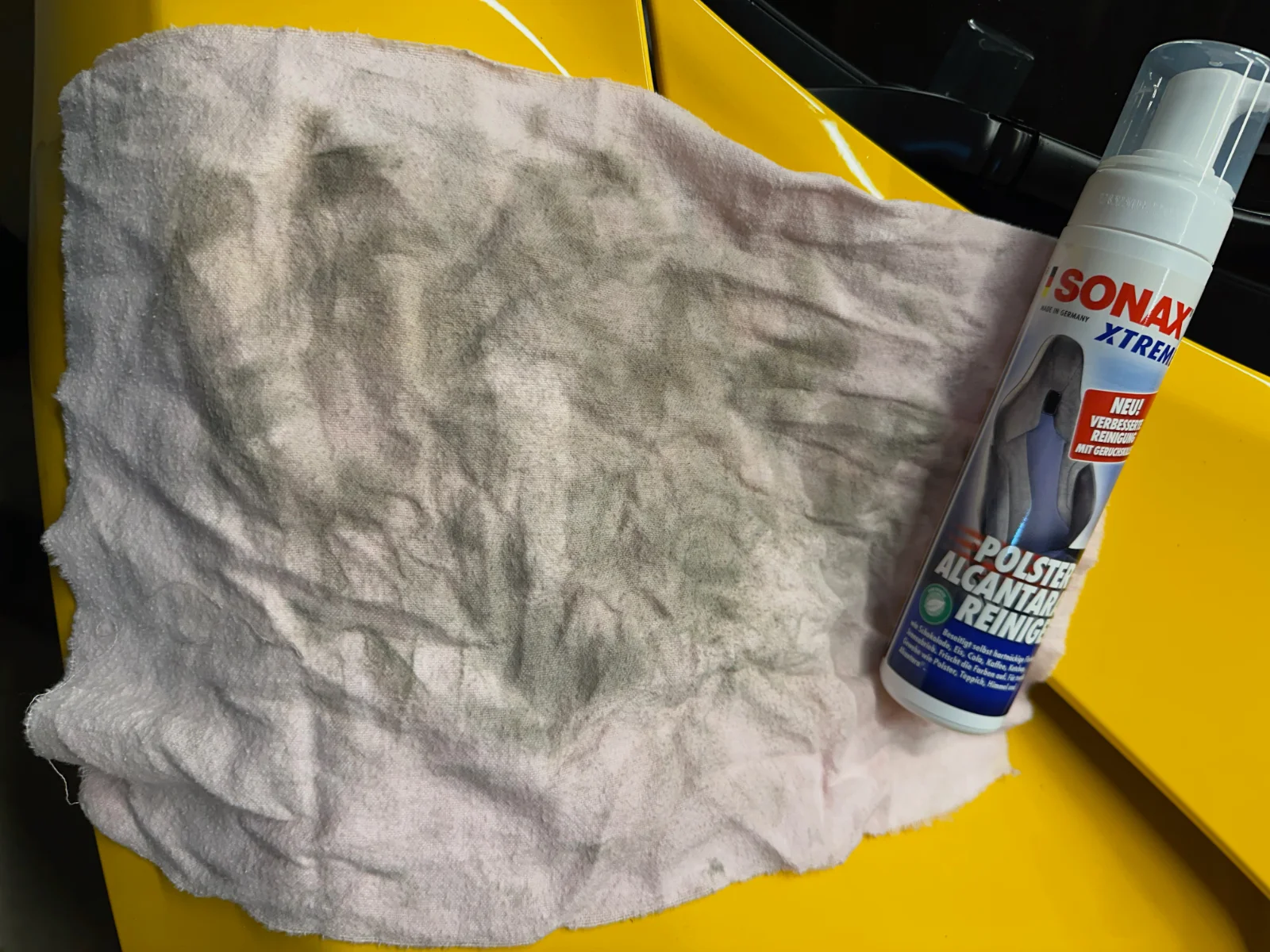 After seeing this thread I thought I would nip in the garage and try the Sonax Alcantara/Upholstery cleaner i got for the Emira wheel cleaning.