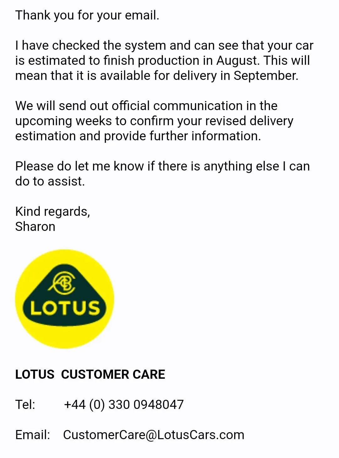 To assist those with tracking progess of builds - I heard this morning that my car will be built September, delivered October. Original deposit was July 8th 2021 at 08:53 (although there was an issue with payment as Nationwide bank declined the transaction, I did get a confirmation from Lotus that my deposit was received, despite no transfer of funds. I did make a further deposit the next day, but at the time Lotus did say they would honour the earlier deposit attempt). So I assume that my deposit date was the 8th but not certain.