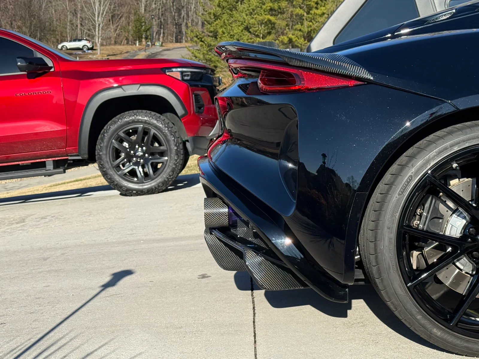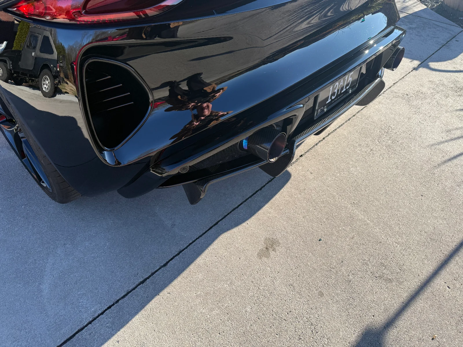 Cars on jacks in the garage. Yes sticks out, my wife and I went to the grocery store. She made a comment about it when we were walking out. It’s also a lot lower. Will take a good side pic next week.Could you get a picture from the side? Yours seems to extend out quite a bit more than the factory diffuser. I’m into the idea of an aggressive diffuser that extends higher and further out than factory.
