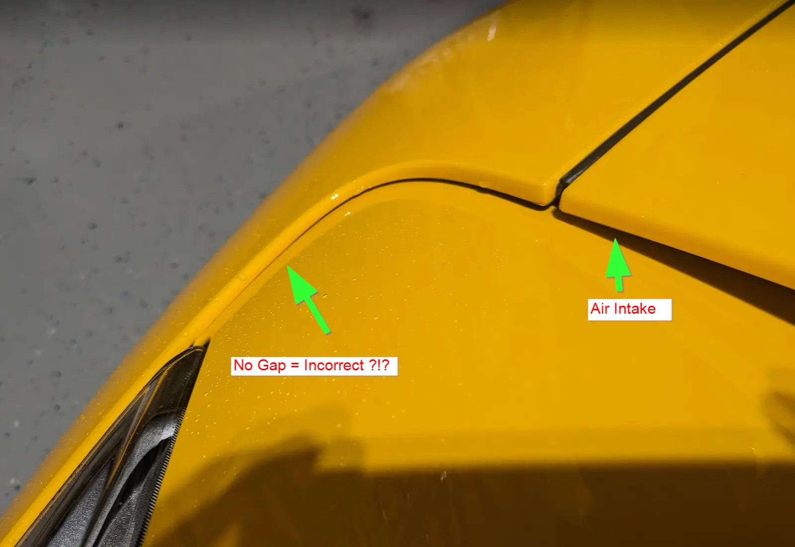 I picked up my Hethel Yellow Emira a week ago, took it home to show off to my mom who immediately noticed some panel gap differences. The hood adjustments were easy for the dealer to correct, but the gap at the front (bottom) of the front air intakes is also inconsistent and they couldn't figure out how to adjust the fender/bumper panels to even these up. On one side, there is a gap which is an extension of the air intake and I believe this is the way it is supposed to look and fit. On the other side, there is no gap and these two panels meet.