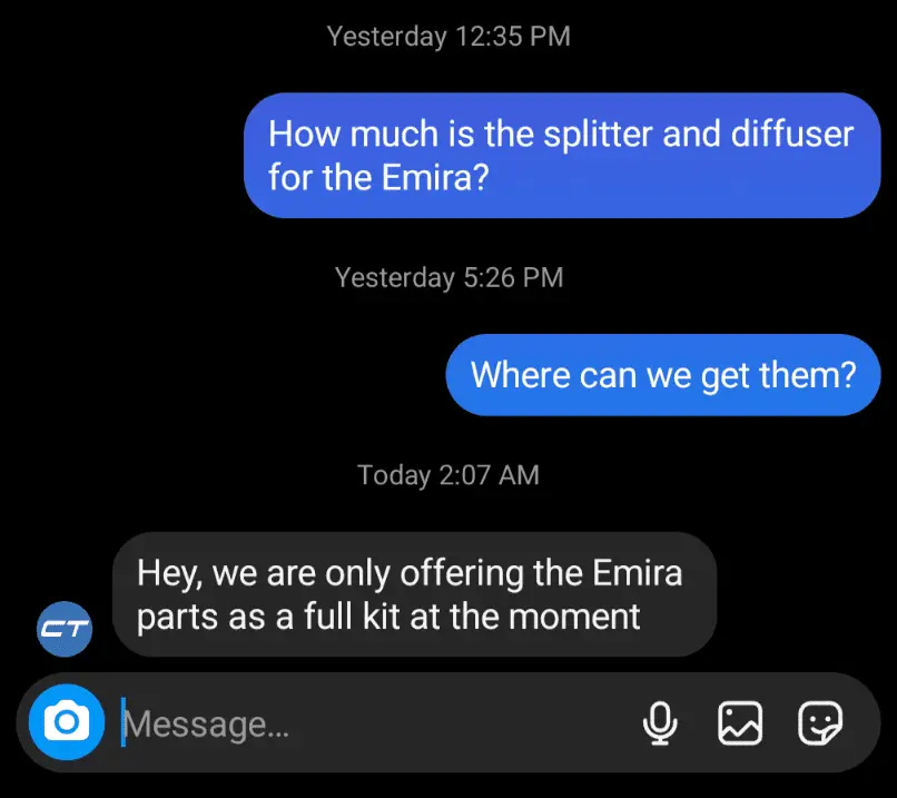 CT Design brings you this full carbon fiber kit for the Lotus Emira, made from pre-preg carbon fiber. Designed in house by the CT Carbon team. Kit consists of: - Front lower single piece splitter - Side Skirt extensions - Diffuser extension - 3 piece spoiler lip Made up of 4 items and 7...www.gregsraceparts.com