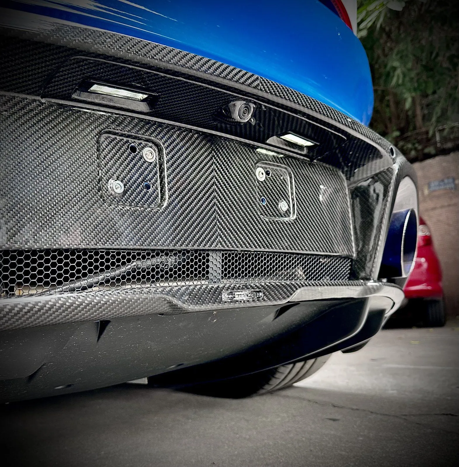 And the Emira diffuser surround with gloss finish carbon fiber with herringbone patterns (V weave)