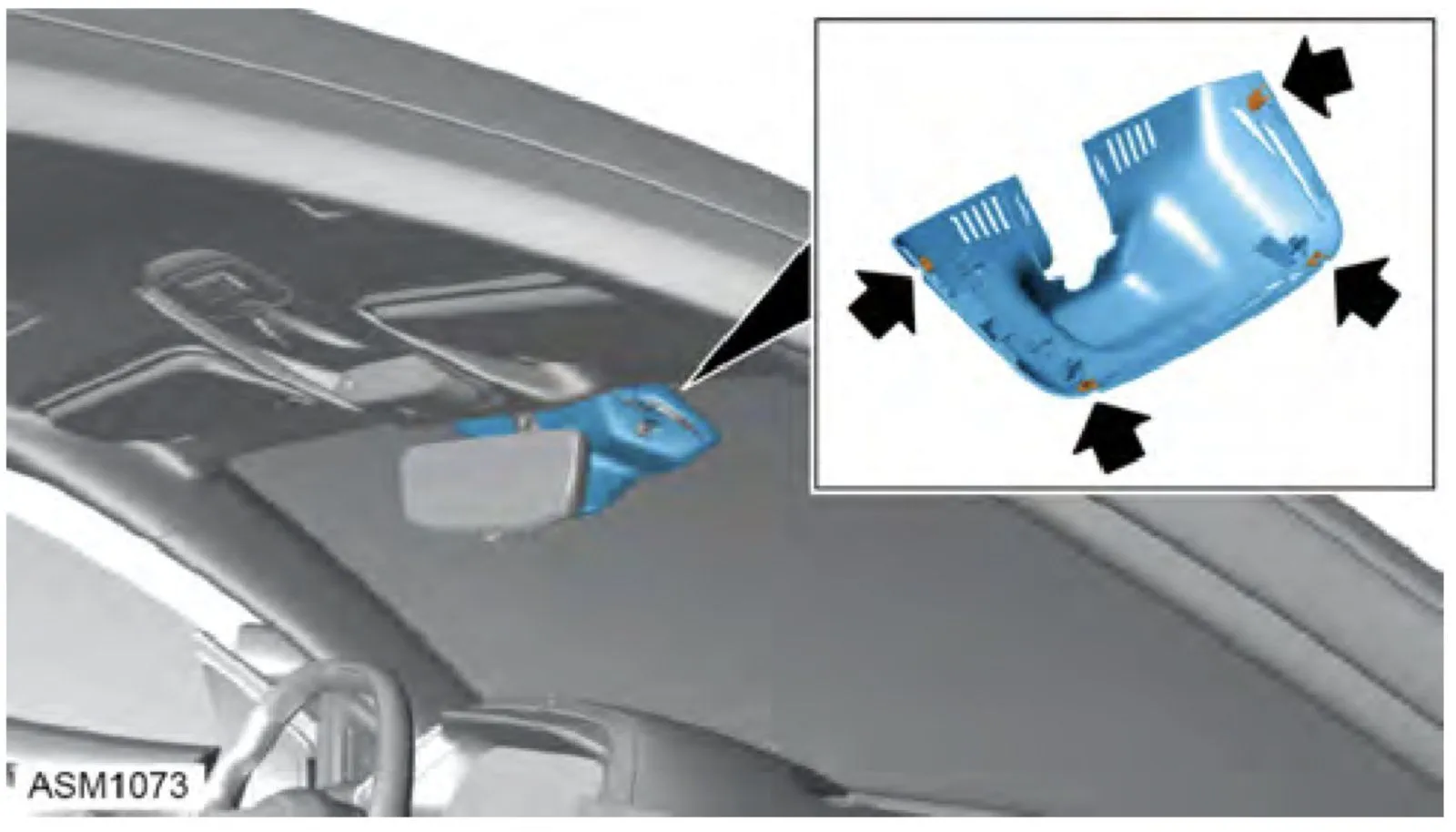 To get the shroud off, first pull off the small section directly above the mirror by hooking something through the vents and pulling back. Then use a trim tool or similar to lever the main section downwards, front first. It’s only clipped on.