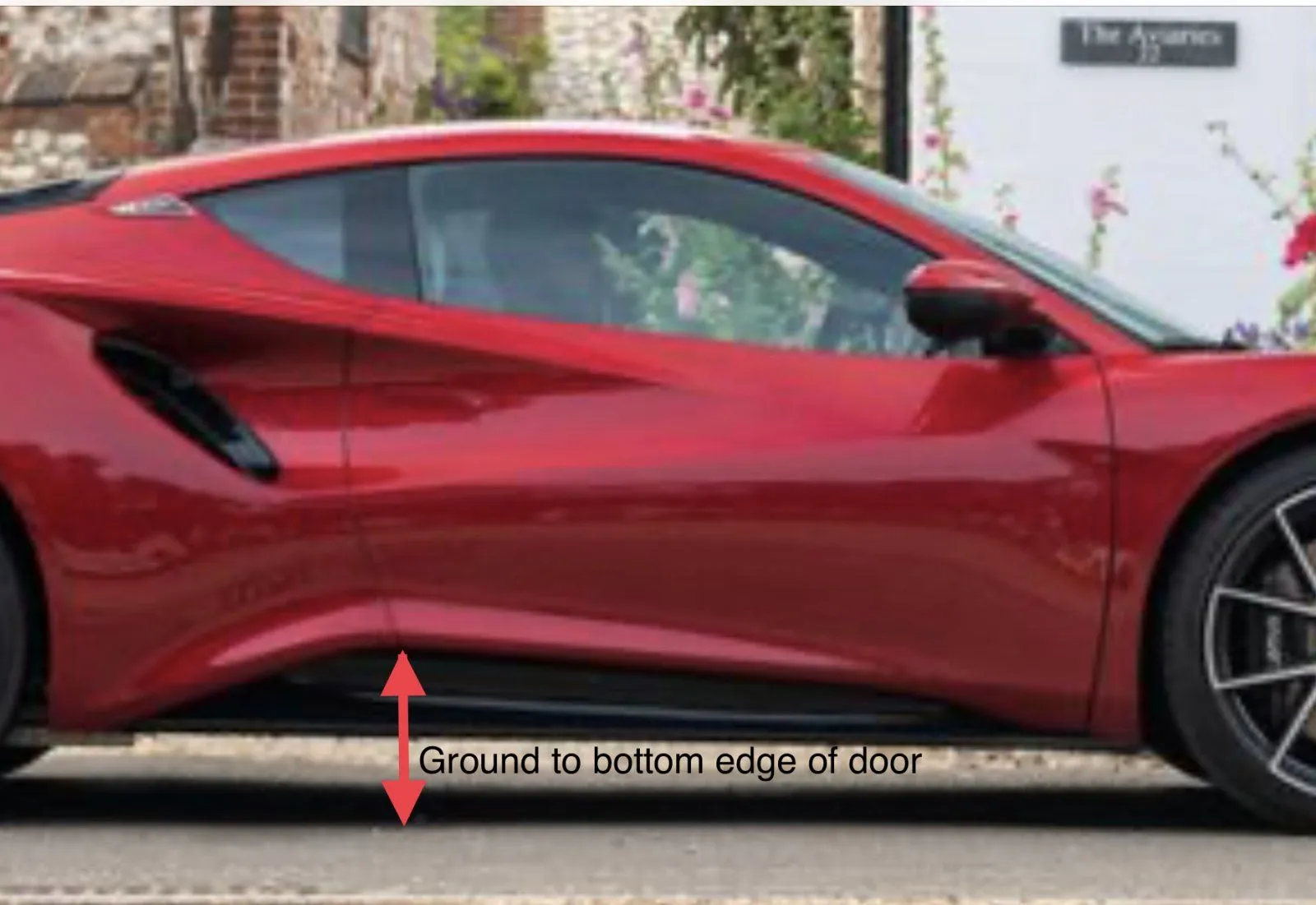 Which tyres and suspension?I need to know how low I have to make a cut out in the drywall of my narrow garage. From ground level to the bottom of the door at its rear edge. Thanks to anyone who can supply a measurement!