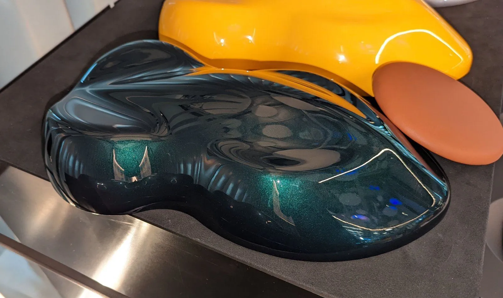 Dark Verdant is a very deep, rich color that's constantly going to be 'talking' to you as it moves, whether outside in sunlight or under street lights and night lighting. The super-high gloss reflectivity is also going to make the shape seem alive as it's moving. Magma and Nimbus both have this same effect.