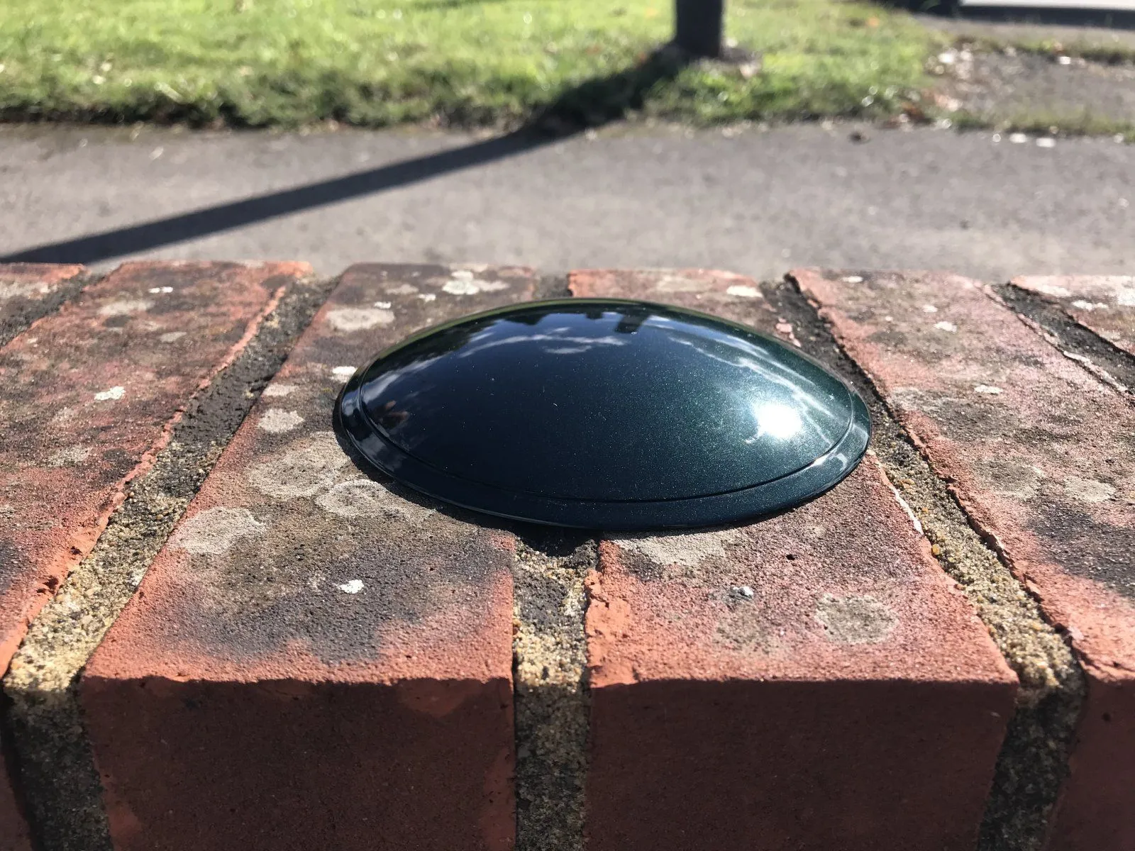 The one I saw was in the assembly hall near to the large full height windows. It was "obviously metallic green" on the sunlit side and "clearly dark green and not black and with not much metallic visible" on the shaded side.