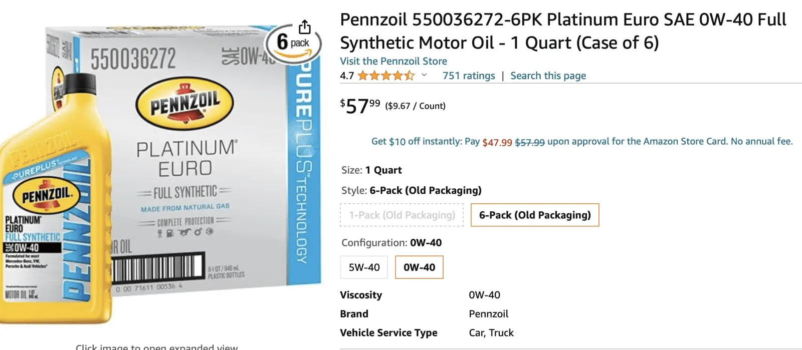 More info on Pennzoil Ultra Platinum Synthetic: https://www.pennzoil.com/en_us/products/full-synthetic-motor-oils/pennzoil-ultra-platinum.html