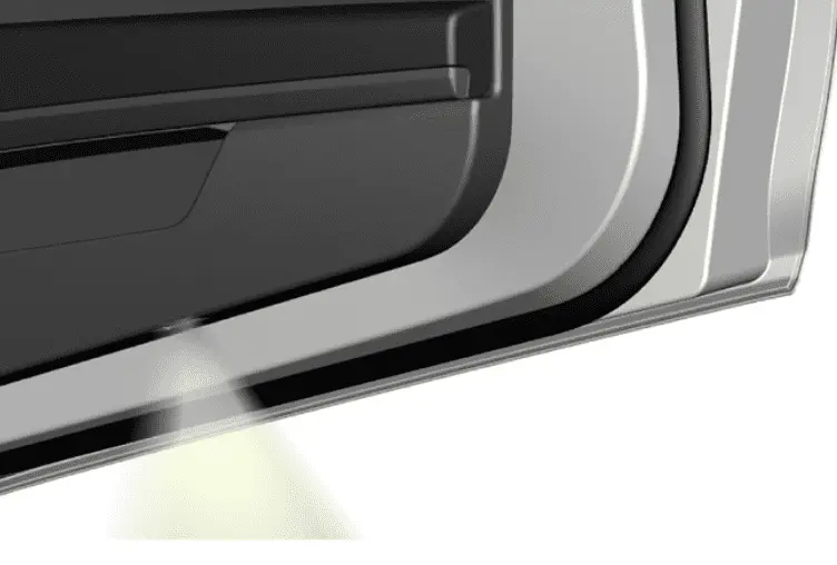 "Approach Lighting" also includes "lighting in the outer handles" which activates in dark conditions. No image is provided for this, but it seems that the edges of the outer door handles will light up so they are visible at night and you know where to push the handle. I hope so anyway as that would be very cool.