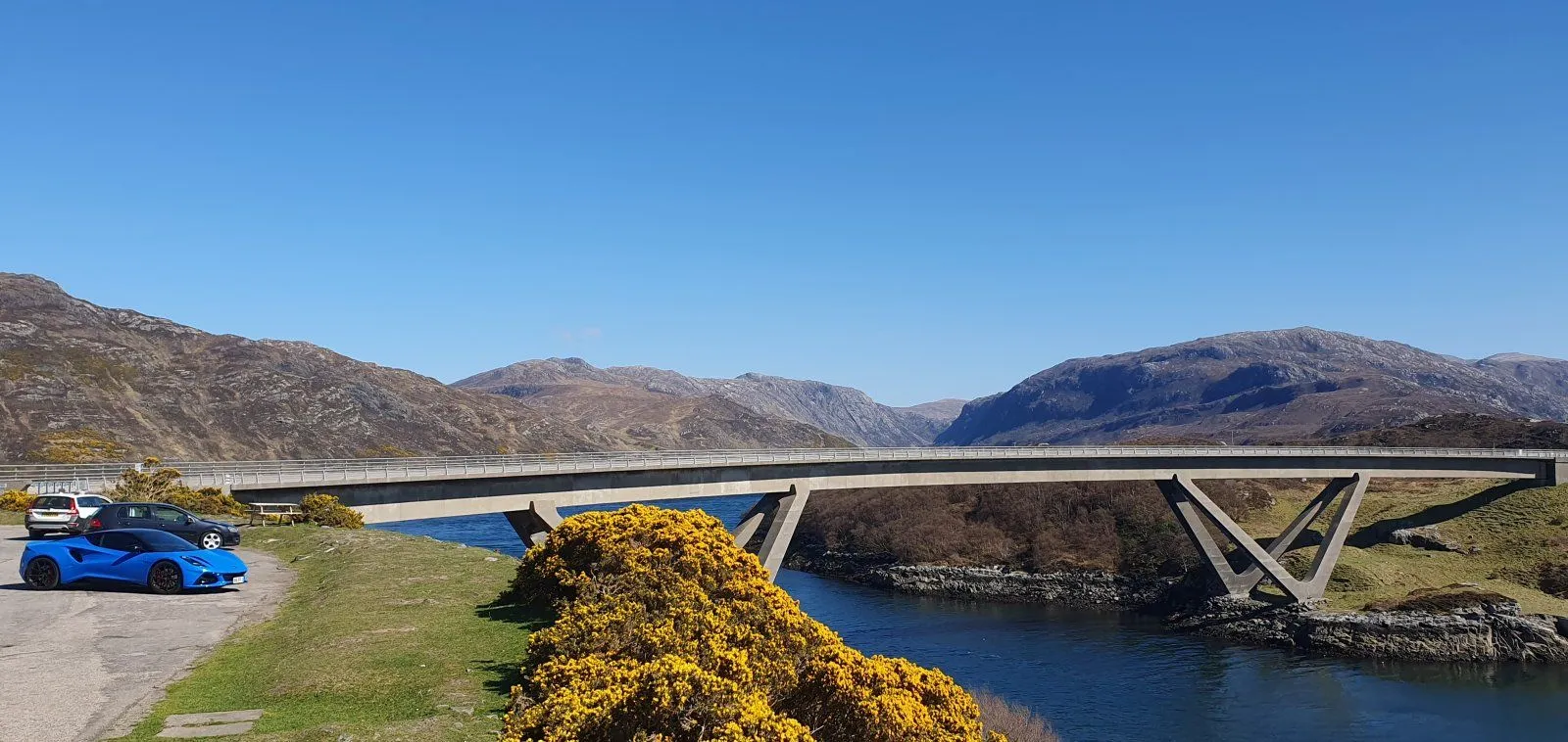 Many of the roads in the North West are lined with gorse in full bloom at this time of year. I took this shot on the approach to the bridge. Incidentally, for all you wheel gap fetishists, this is a flat bit of road and the ride height looks spot on to me.