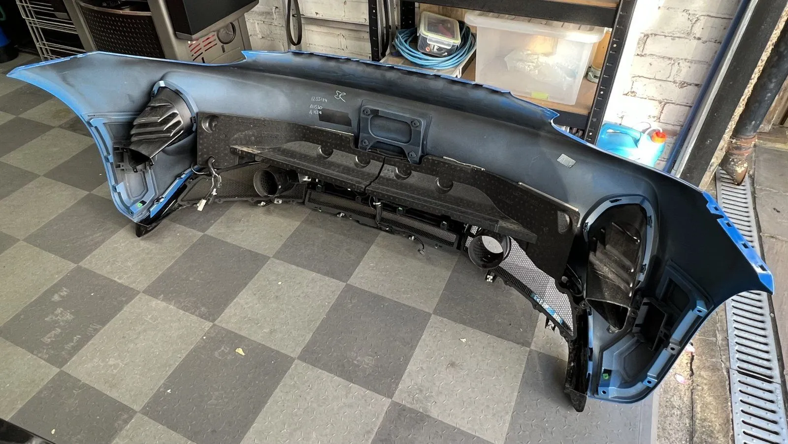 It was a bit of a faff getting the undertray/diffuser off but for anyone doing this themselves you only have to remove the outer bolts/screws. There is a horizontal reinforcement bar in the middle which does not require removal and can stay on the undertray/diffuser - illustrated below: