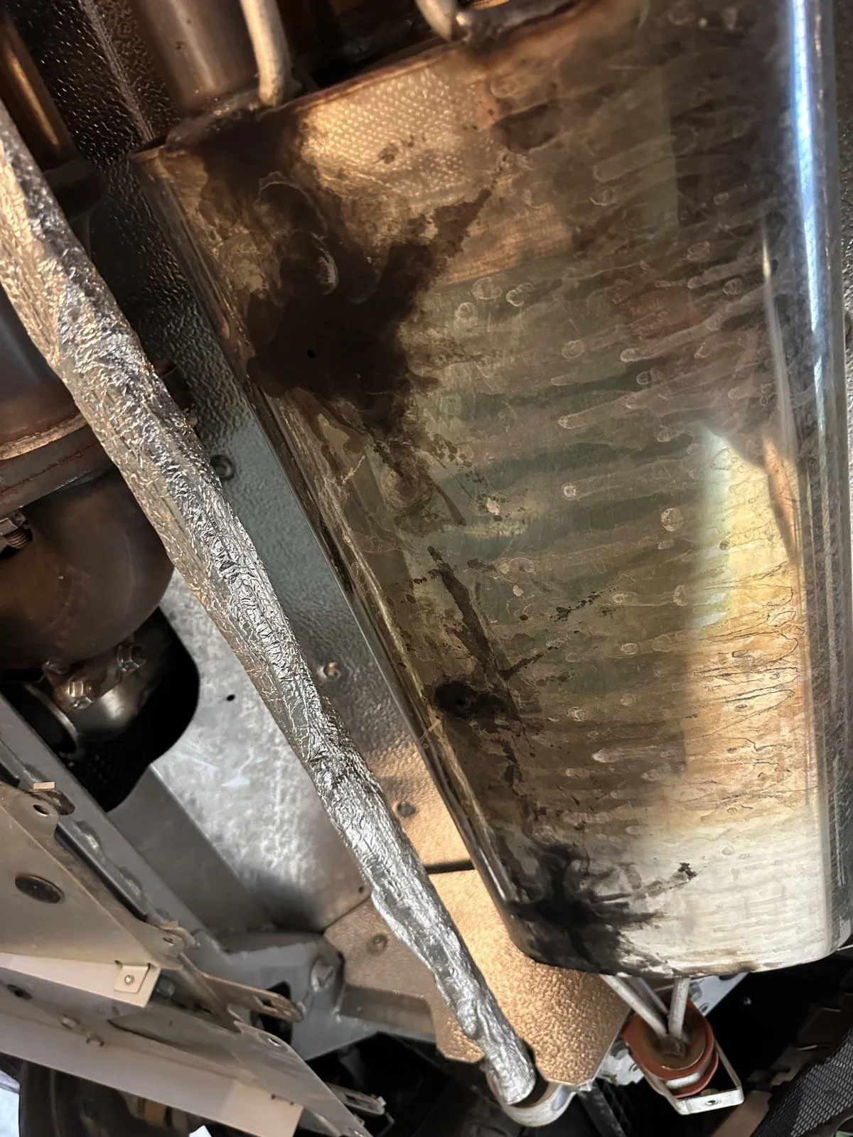I think the holes are there to let condensation drain out of the exhaust. It does leave a bit of a mess inside the undertray.I’m currently working on my car and a quick observation I’ve noticed, there are 3 small holes in the exhaust which lead to the chalk (?) on the diffuser heat shield, I’m certain there is a reason but it is odd to me.