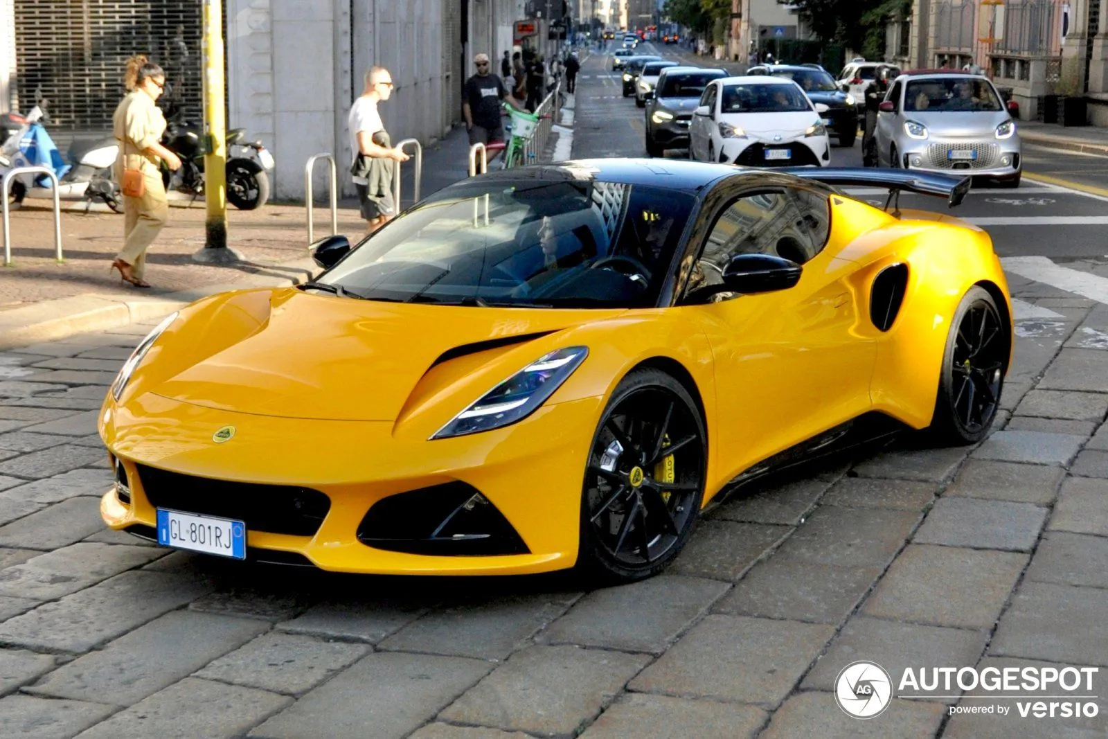 hmm the black wheels made the wing more forgiving than on the blue car.Found more photos of a different Emira with what appears to be the same wing: