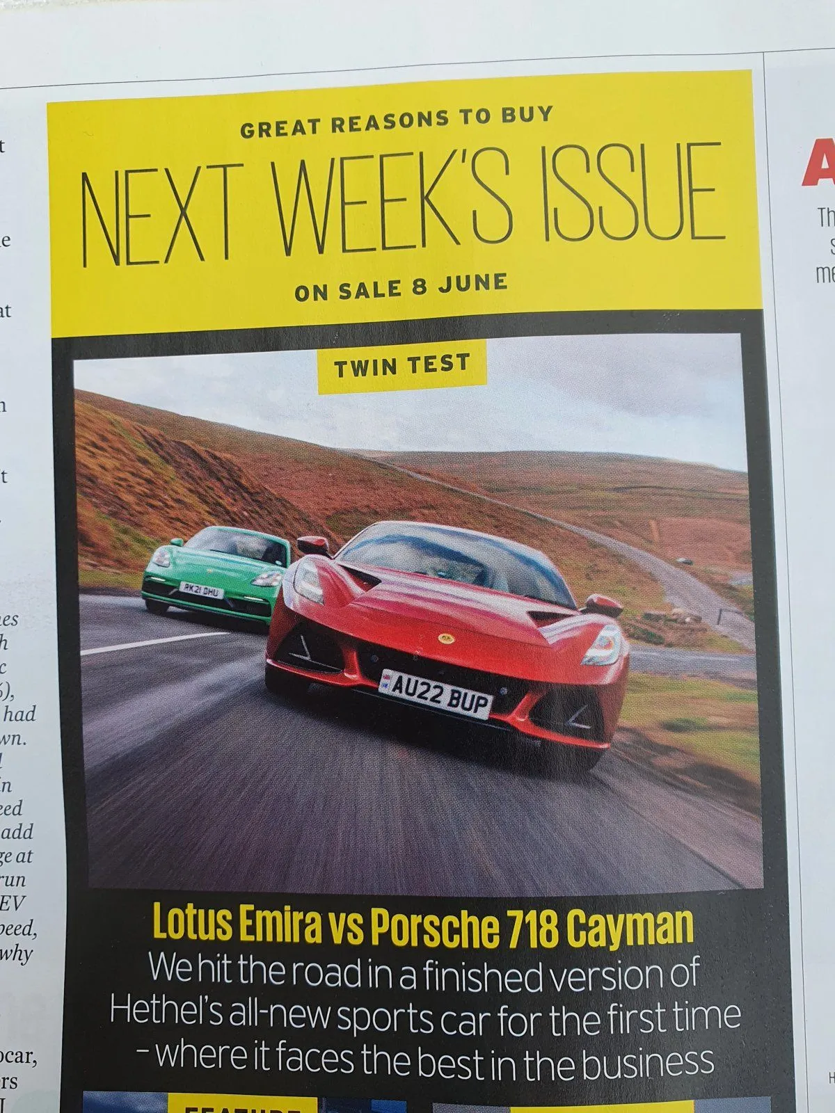 Have you read any of the previous posts in this thread??So, rumor has it that a new Emira review is to be done by Top Gear in June? I assume it's different than the one done in March - any info on if that's coming? Where/how?