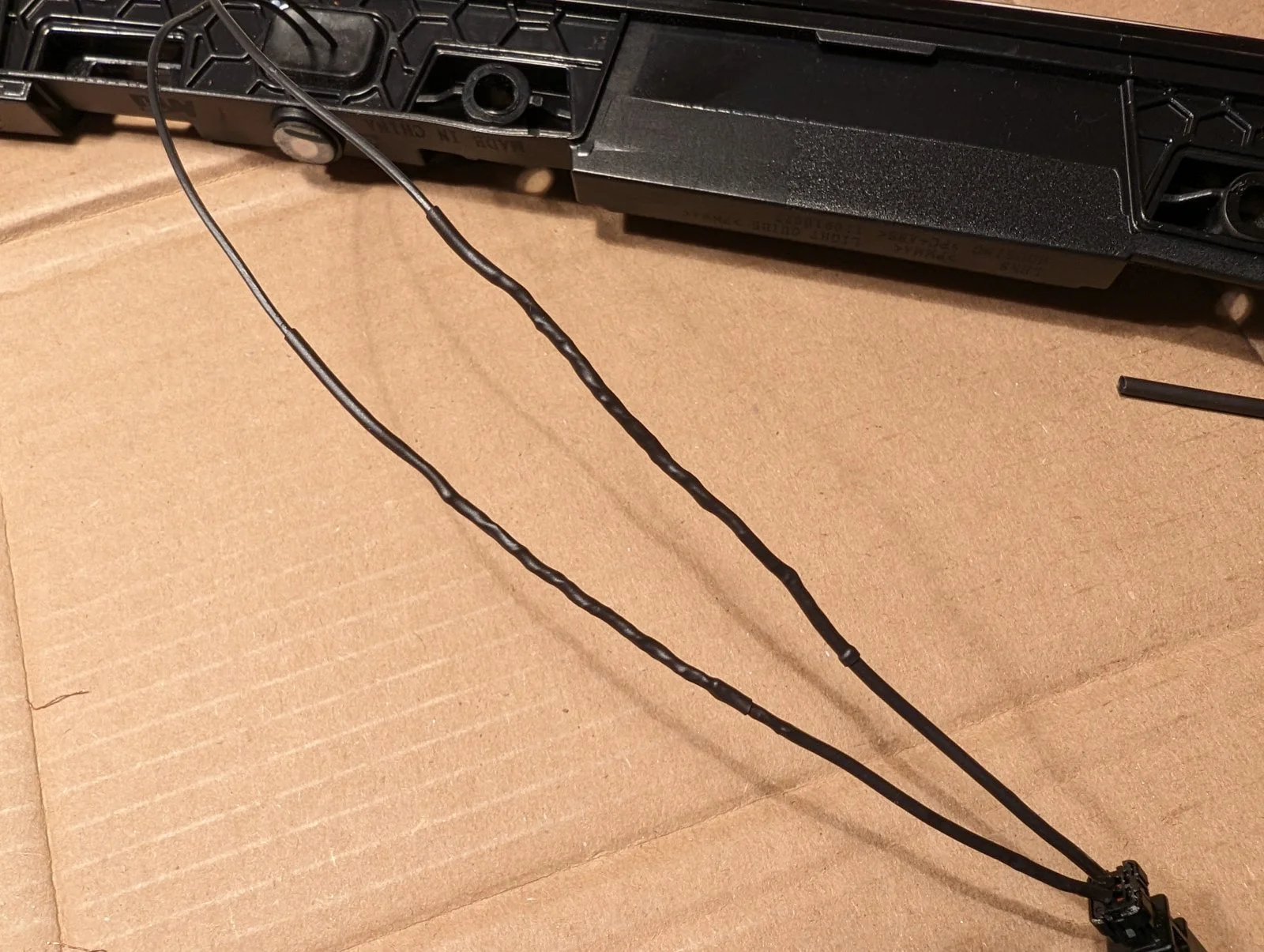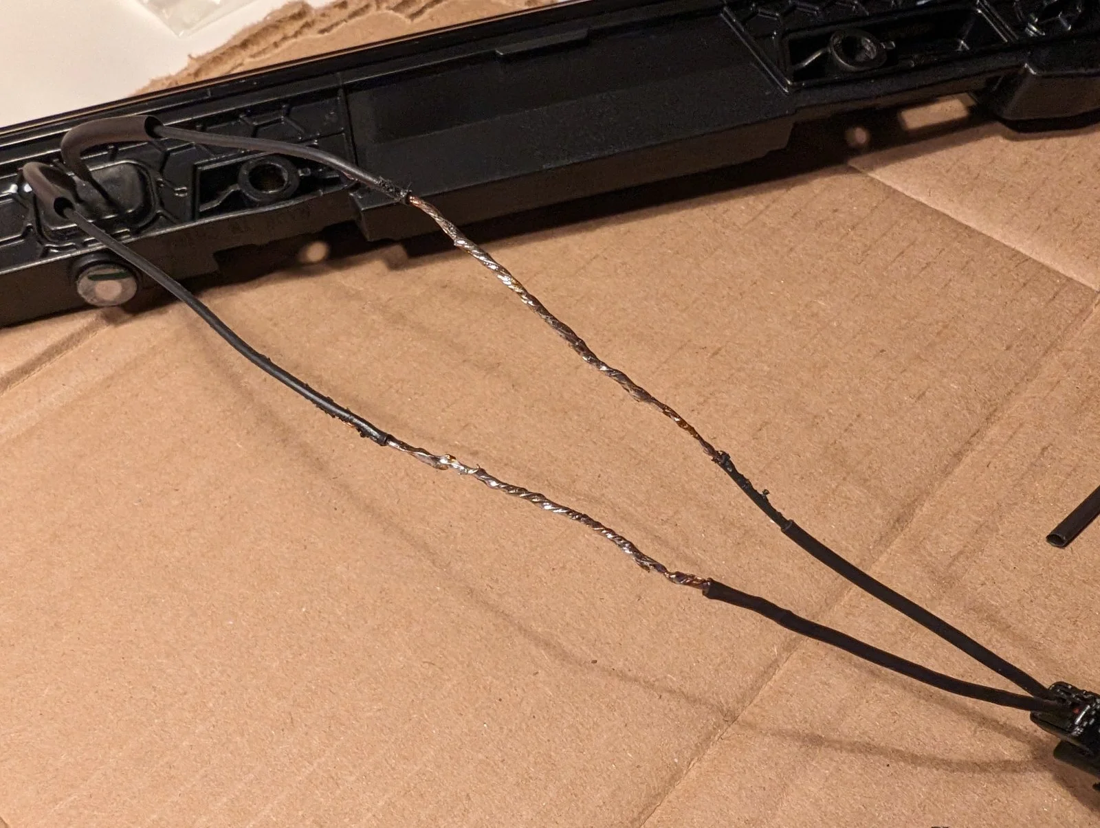 Then heat shrink tubing over the spliced sections to insulate and seal them, and pro grade vinyl tape wrap to finish it off and help stabilize the spliced sections for the long haul. I expect this will be a permanent fix.