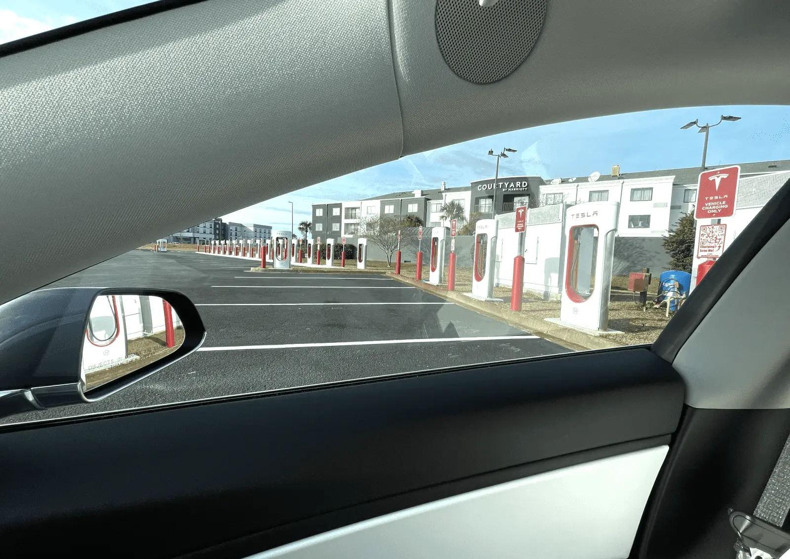 In the US, the Tesla network is excellent and lines are uncommon (mostly happening on the west coast). Here's a charging station in South Carolina: