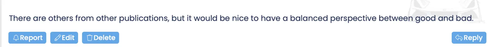 There are others from other publications, but it would be nice to have a balanced perspective between good and bad.