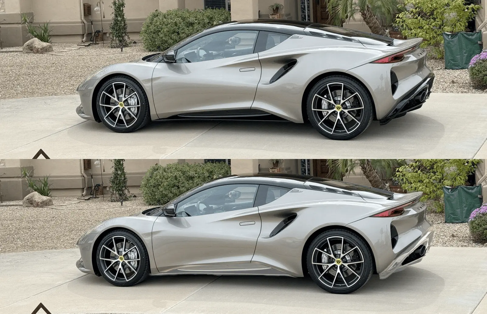 I realize the "cinched up" look (dark side sills / skirts on a lighter car) is very Lotus in its style..
