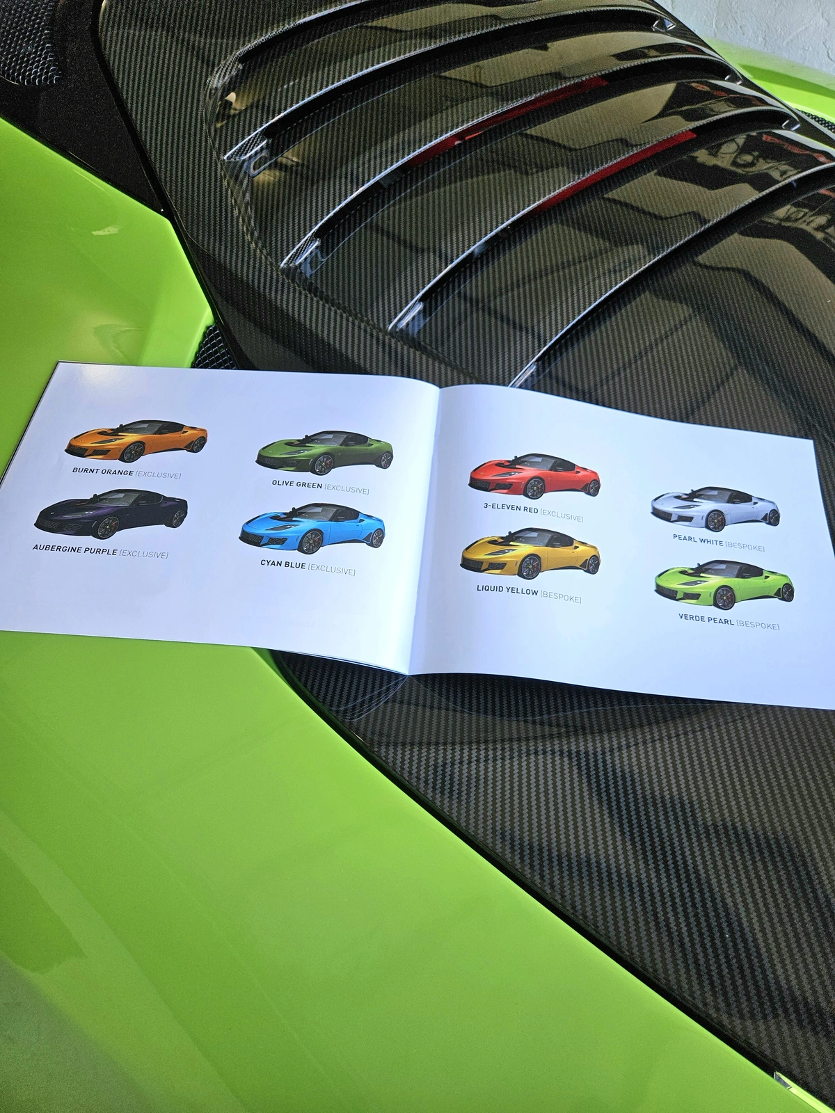 I ordered in October '24, and my car was on the last boat before Lotus paused US shipments. The bespoke option was not on the table in October, so I suspect that none of them will reach the US in the near future. I have a strong feeling that Lotus should be yellow, but this color ain't bad either.
