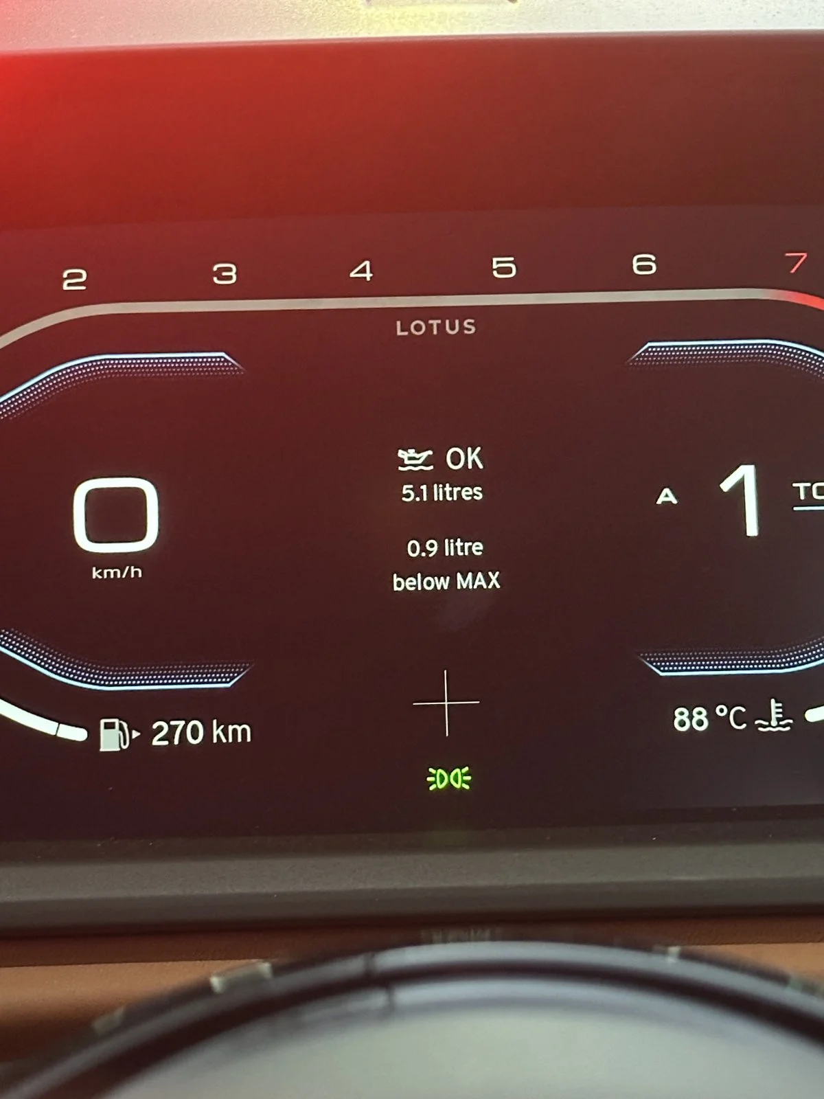 After my first oil change, an Emira owners group I enjoy going touring together with drove to the beautiful Nikko area with beautiful autumn colors. On my way home to Tokyo on the Tohoku Expressway, I received my first OIL LEVEL LOW warning on the dash display.