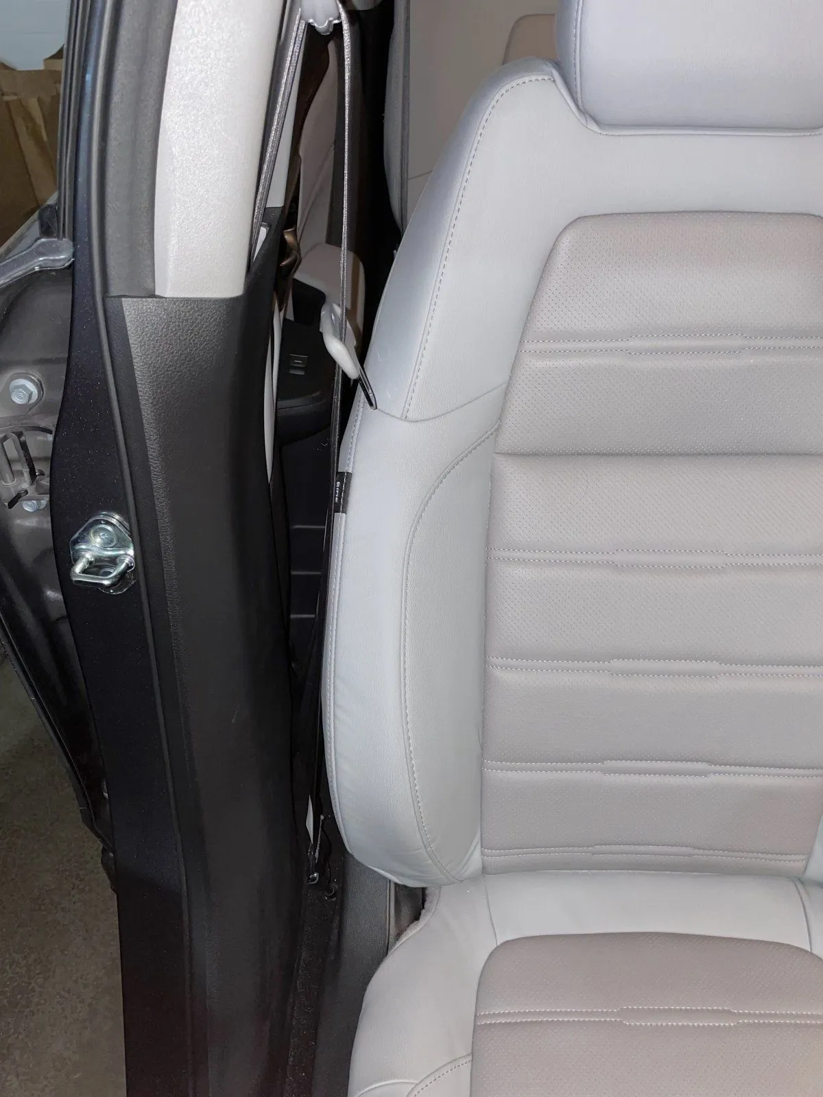 As you can see, the belt is flat coming up out of the B Pillar, and remains flat all the way down to the fastening point at the bottom.