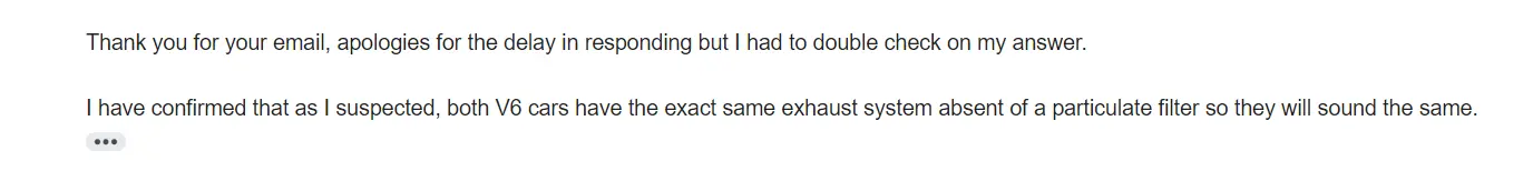 Watching Alpine 110 reviews (1.8l, but even so, representative of 4 pot sound) also made me realise a 4 pot sound is what it is regardless of exhaust tune…a smoother purr from 6 pots sounds so good and then there is the supercharger whine on top too.