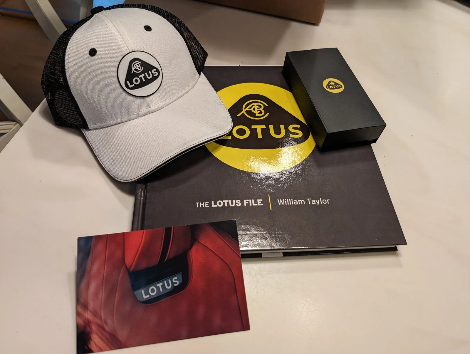 It is a close call for me between the Emira key chain (heavy for its size) vs the history of Lotus book!