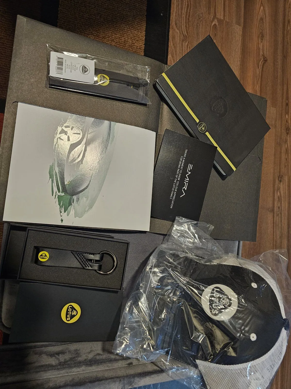 Same here…but very nice pen, even made in Germany, that was surprising and the notebook made in Italy. I really liked the lanyard and keyfob attachment, one less thing to buyIronically, I finally received my gift today! ONE DAY after taking delivery of the Emira. I'm still happy to have it, but my wife and I had a good laugh when I picked up the "Lotus Cars USA" box on the porch this afternoon.