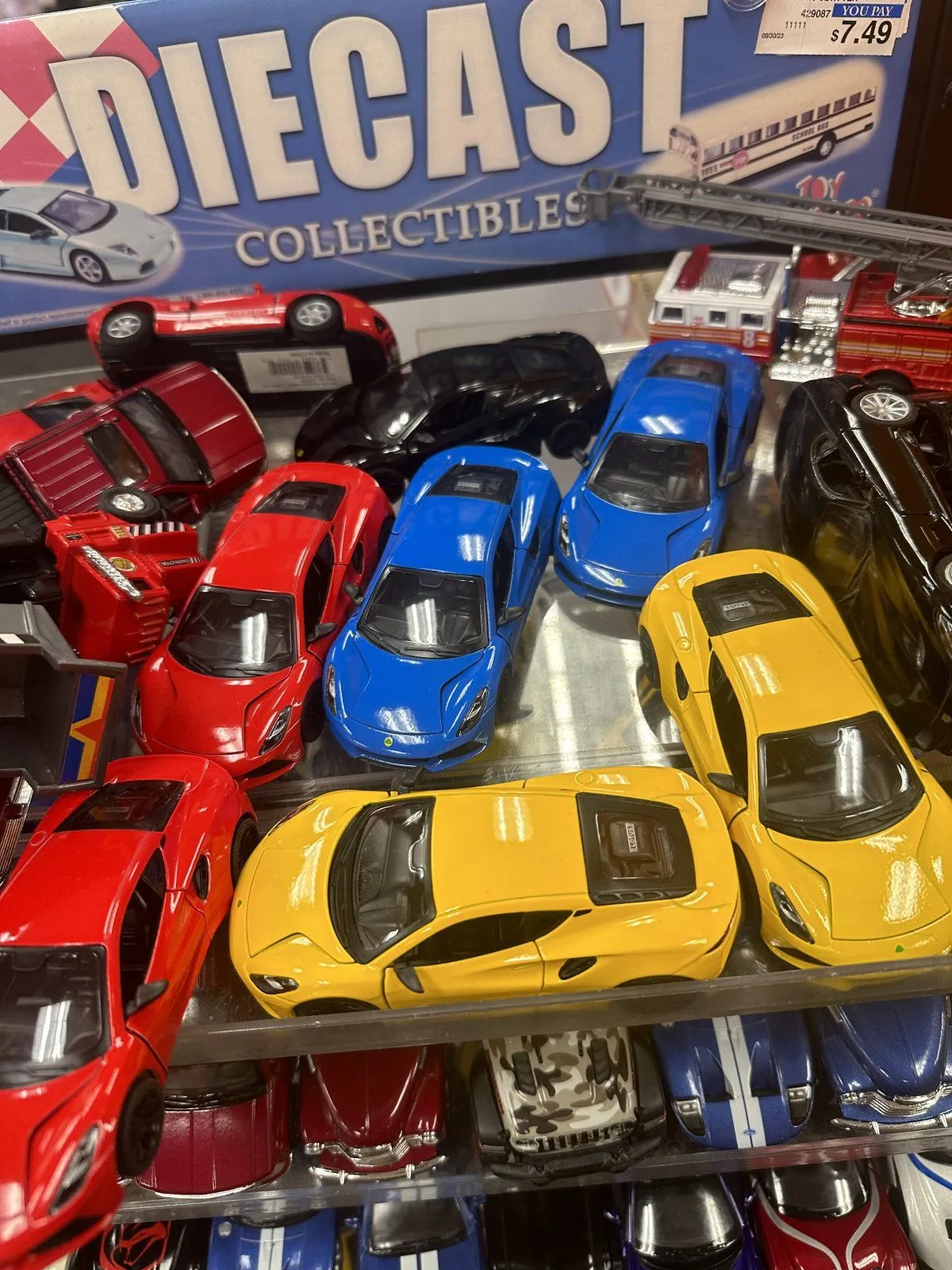 My kids just found these kinsmart 1/34 scale models in a NY CVS for about $8 each. They only had yellow, they got one each. Not sure about that panel gap!