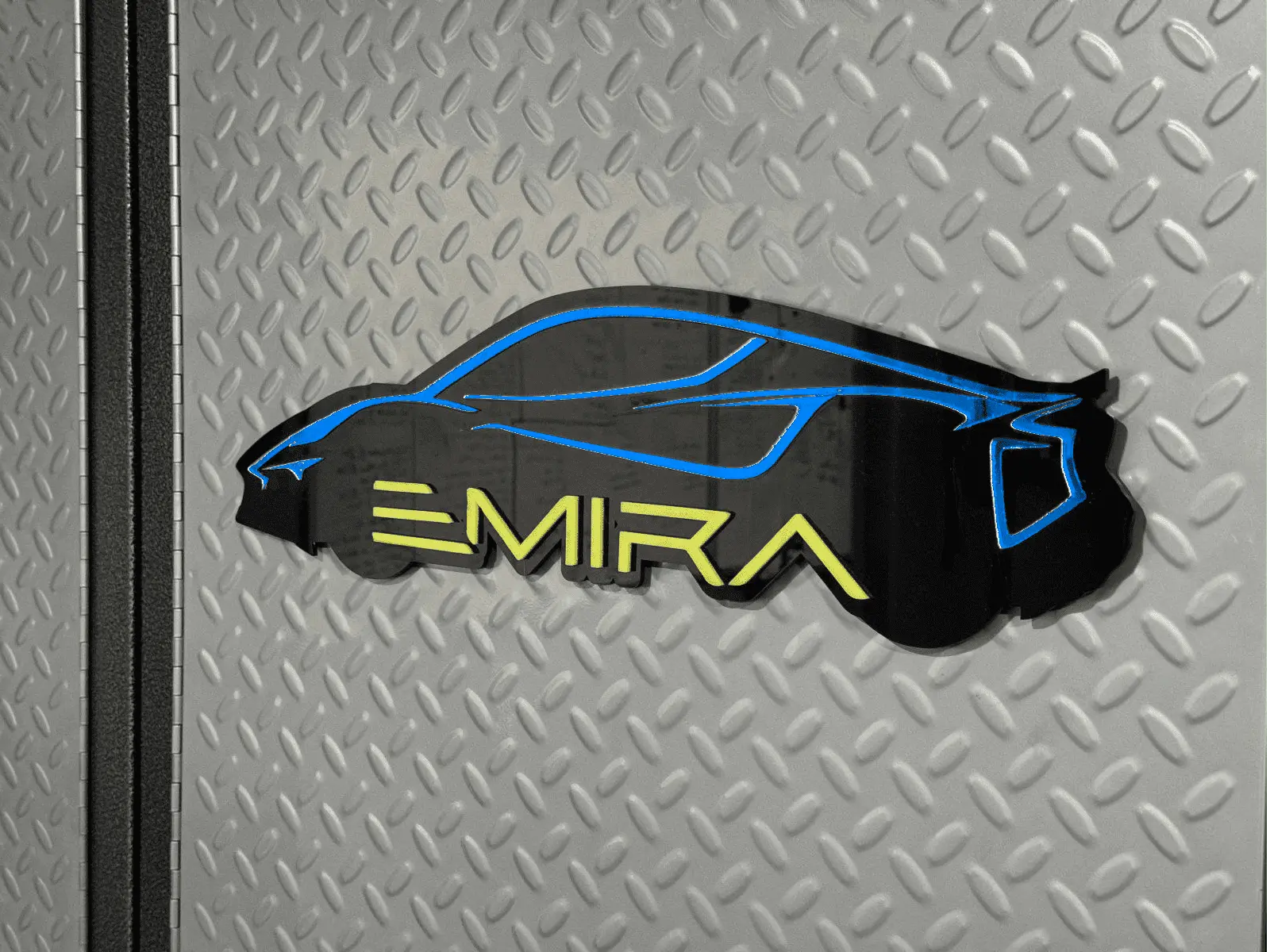 It might go on the wall but for now it’s on magnets on the cabinet door right in front of the Emira. I Wanted to match my Lotus yellow and black cover