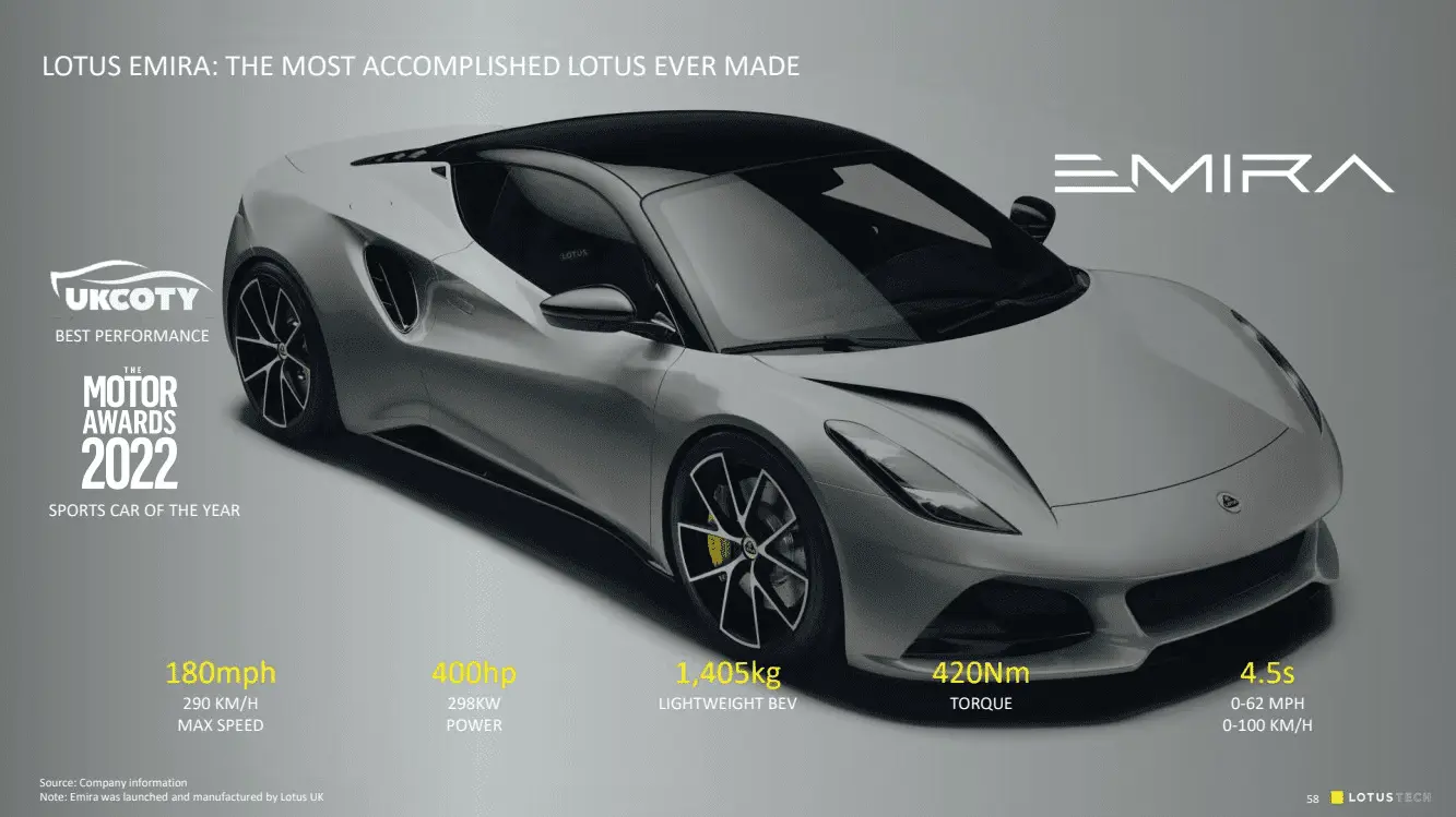 There is also an illustration of Lotus Emira proudly described as: <<The most accomplished Lotus ever made>>