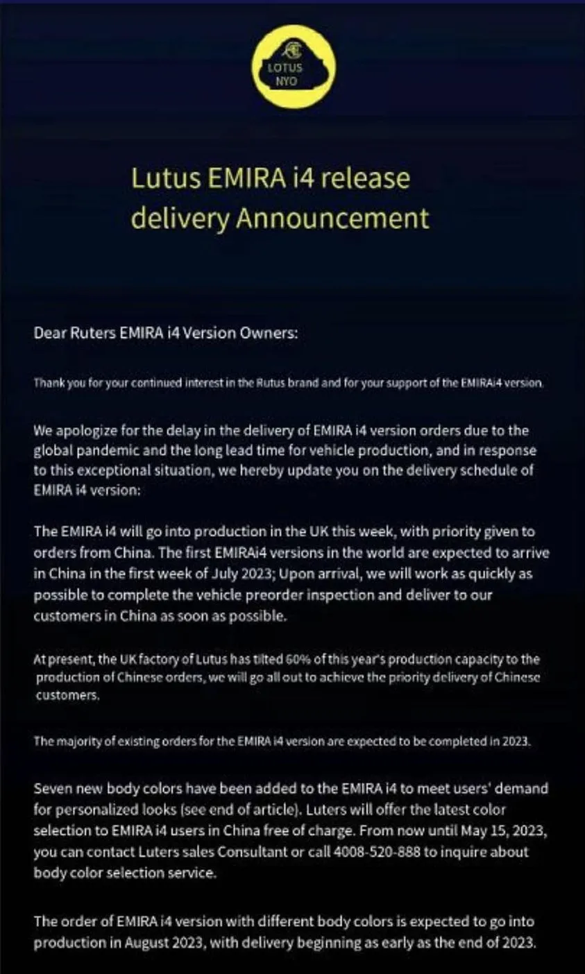 Also the marketing notice, the logo has the Chinese market logo but it looks entirely fake? Am I missing something, is this standard?Yes they will be manufacturing I4 and V6 Emiras at the same time. That was always the plan as far as I’m aware, with the V6 getting a head start.