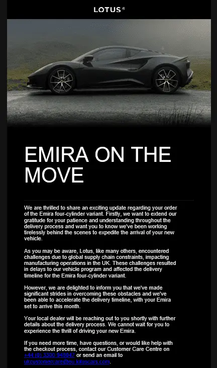 Had the same, but when I log into the complete transaction partin order to pay, it's still greyed out.I just received this email - looks like all UK I4 orders are being progressed now...
