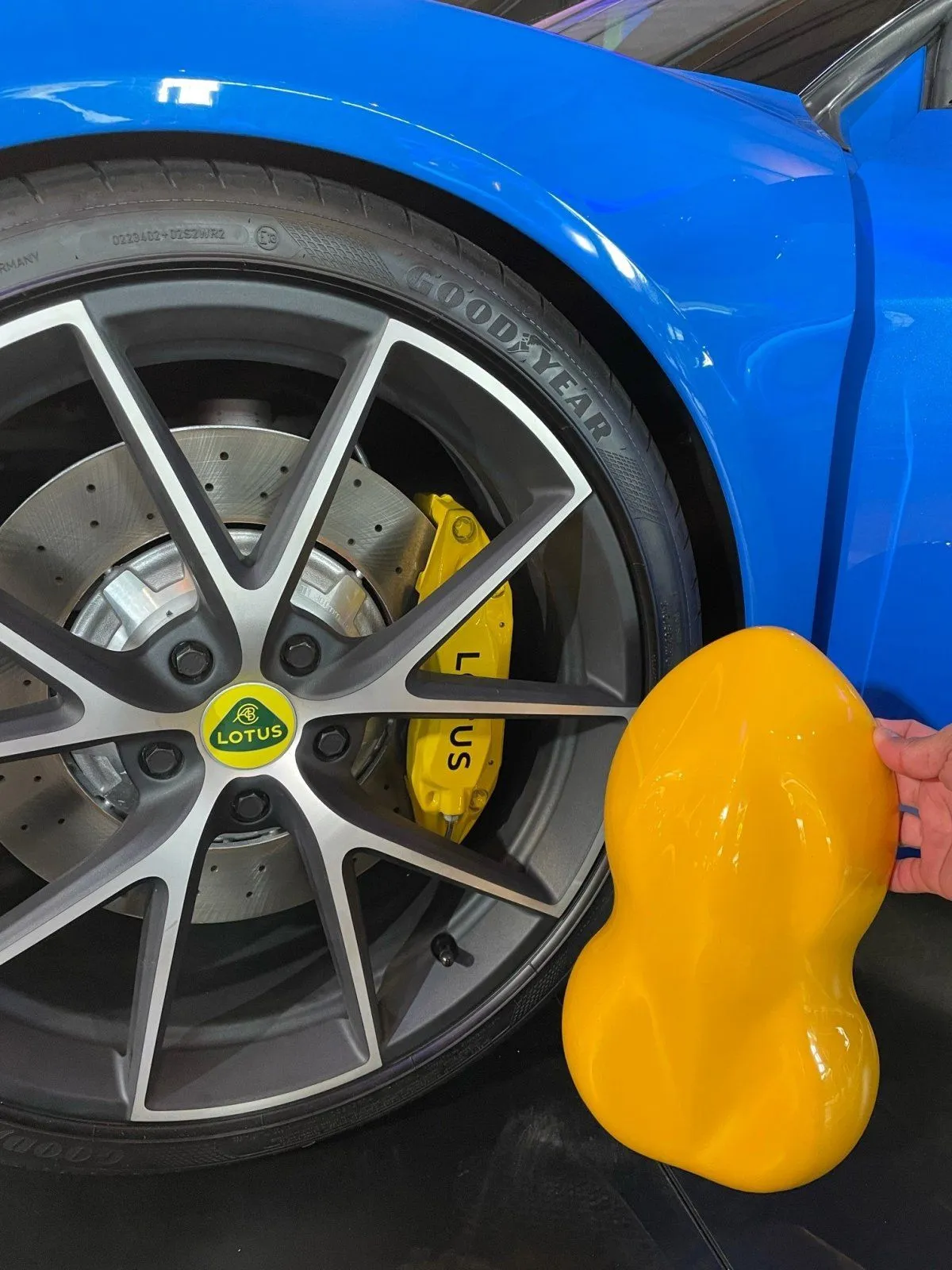 Lotus confirmed there are four different yellows for wheel centre and nose badge, calipers, Hethel Yellow paint and interior yellow stitching. One of the reasons I've not gone for the yellow calipers.This is from the blue car in China. The logo and caliper yellow match, but the shadowing on the shape of the caliper gives the impression they're slightly different, but they aren't.