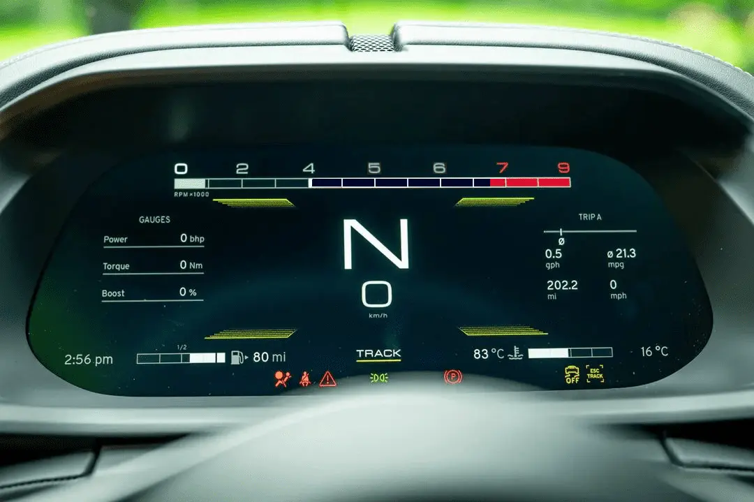 I'm going to be the weird one and say that this is a really interesting approach to a classic problem... digital bar tachs are somewhat non-ideal to use on track because there's a ton of the bar that's not actually used when in normal track driving rev ranges. At least with a round tach you can prioritize the important range across the top of the tach, but with a bar graph there's no natural way to highlight a range without adding clutter to the display. So this solution is interesting.