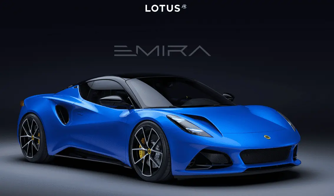 You can see it's a left-hand drive car, and either an automatic or the early studio model with the yellow steering wheel stripe. The yellow calipers do not match the yellow of the Lotus logo. This is an old image. Should they be using it? No, but then this is Lotus.