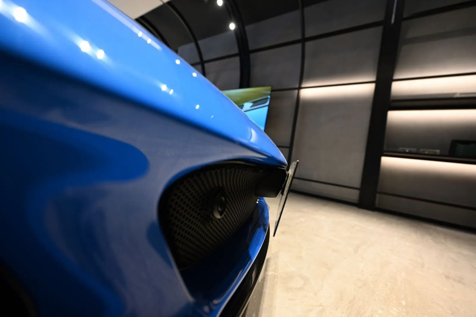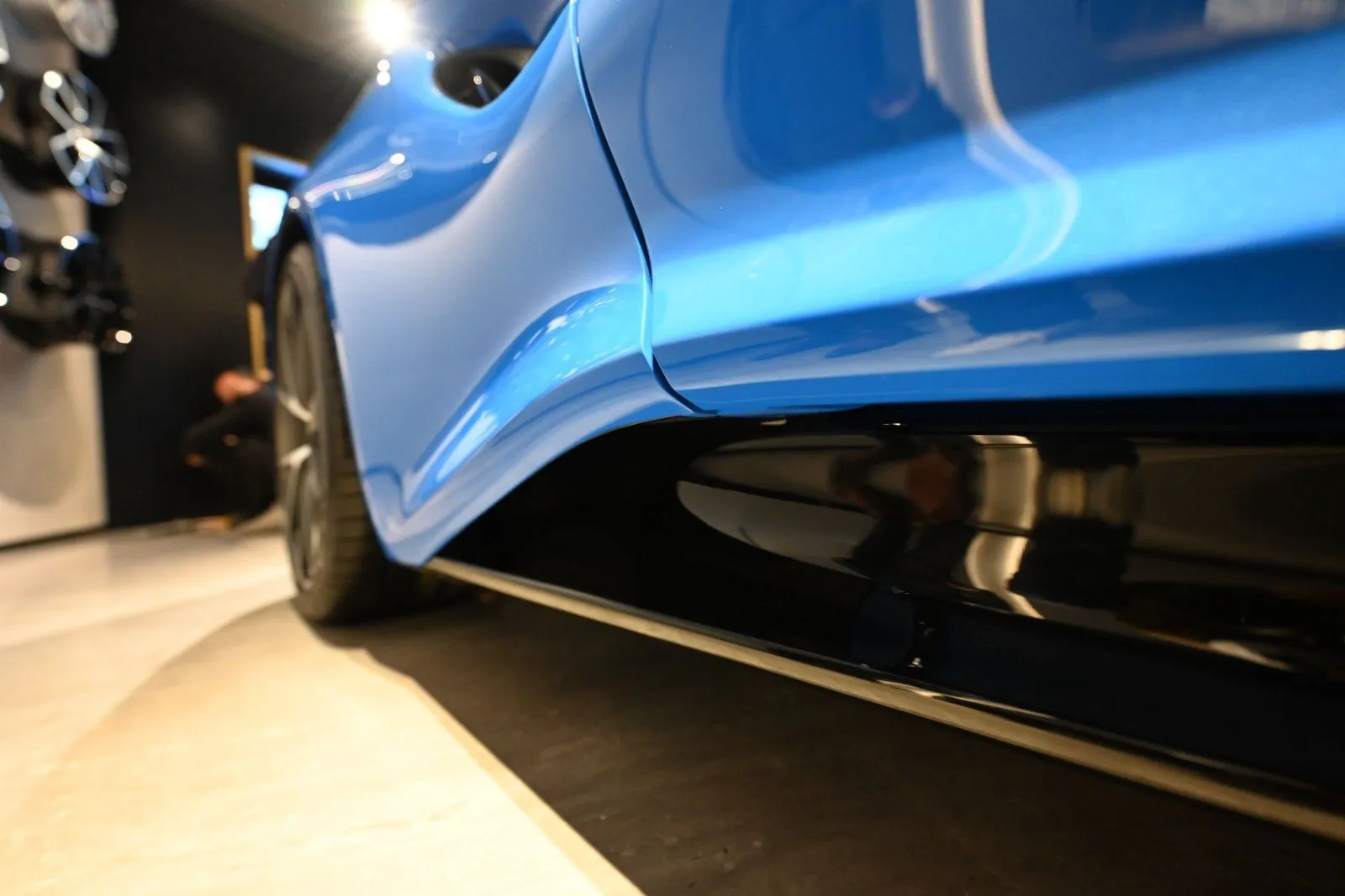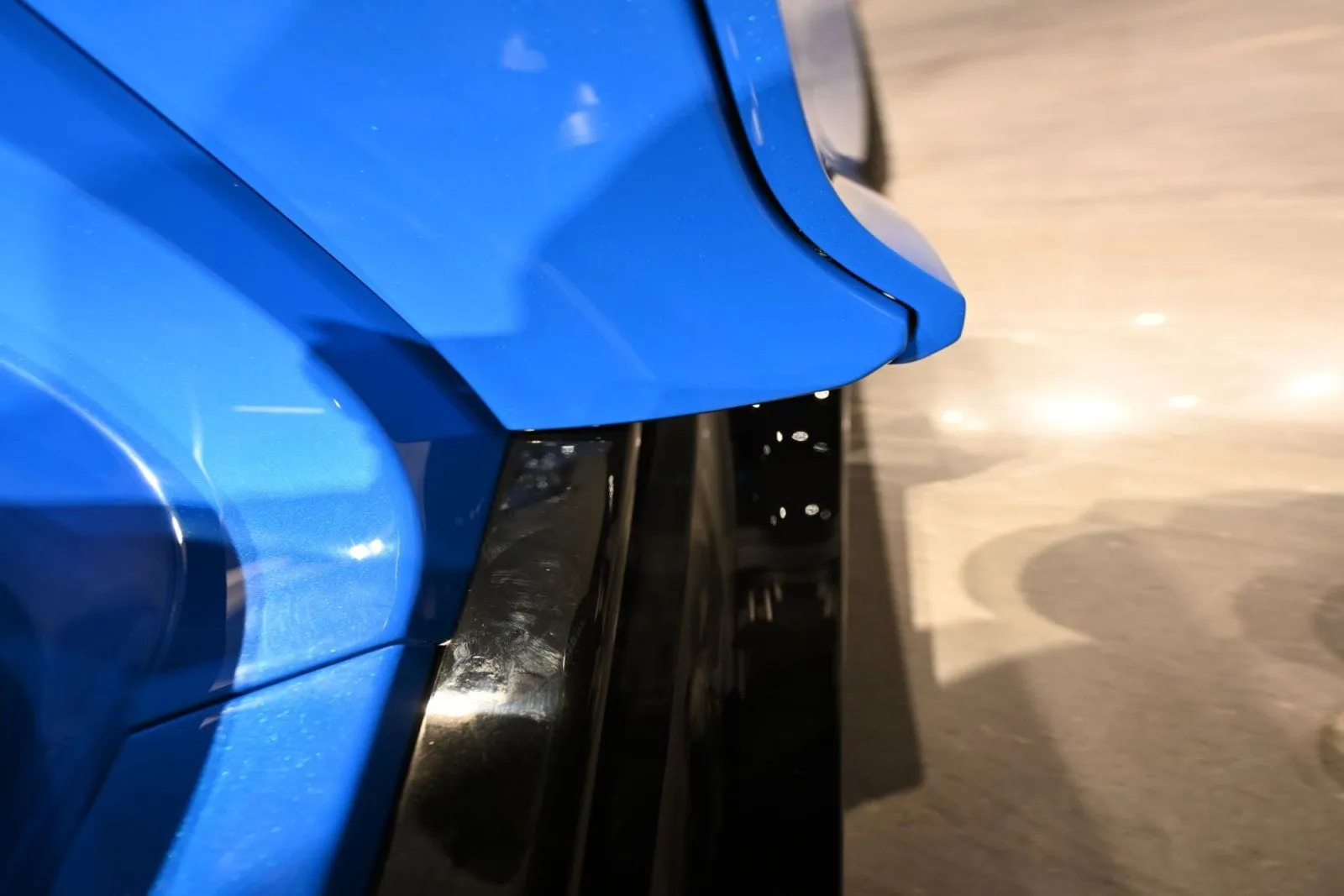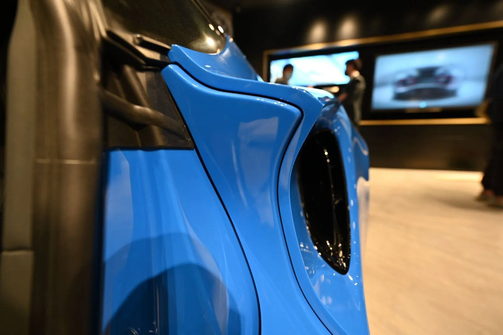 It's hard to see here but between blue covering pannel and black side skirt there is a air channel directing air into rear wheel archs, presumeably for brake cooling, neat!