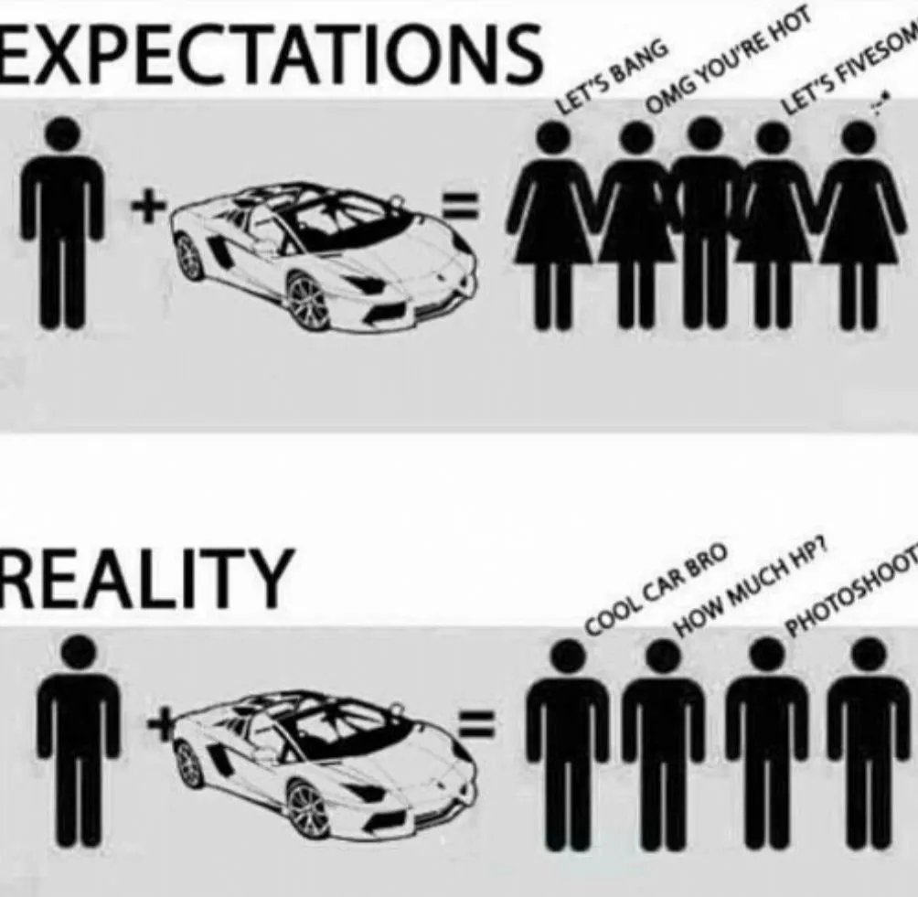 Sports cars are the guy version of "I hope he notices that my nail polish matches my shoes!". I.e.: the person thinks (or tells themselves) that it will attract the opposite sex, but in reality they only end up receiving attention and compliments from their own gender.thats because he has a lambo and not a L O W T U S