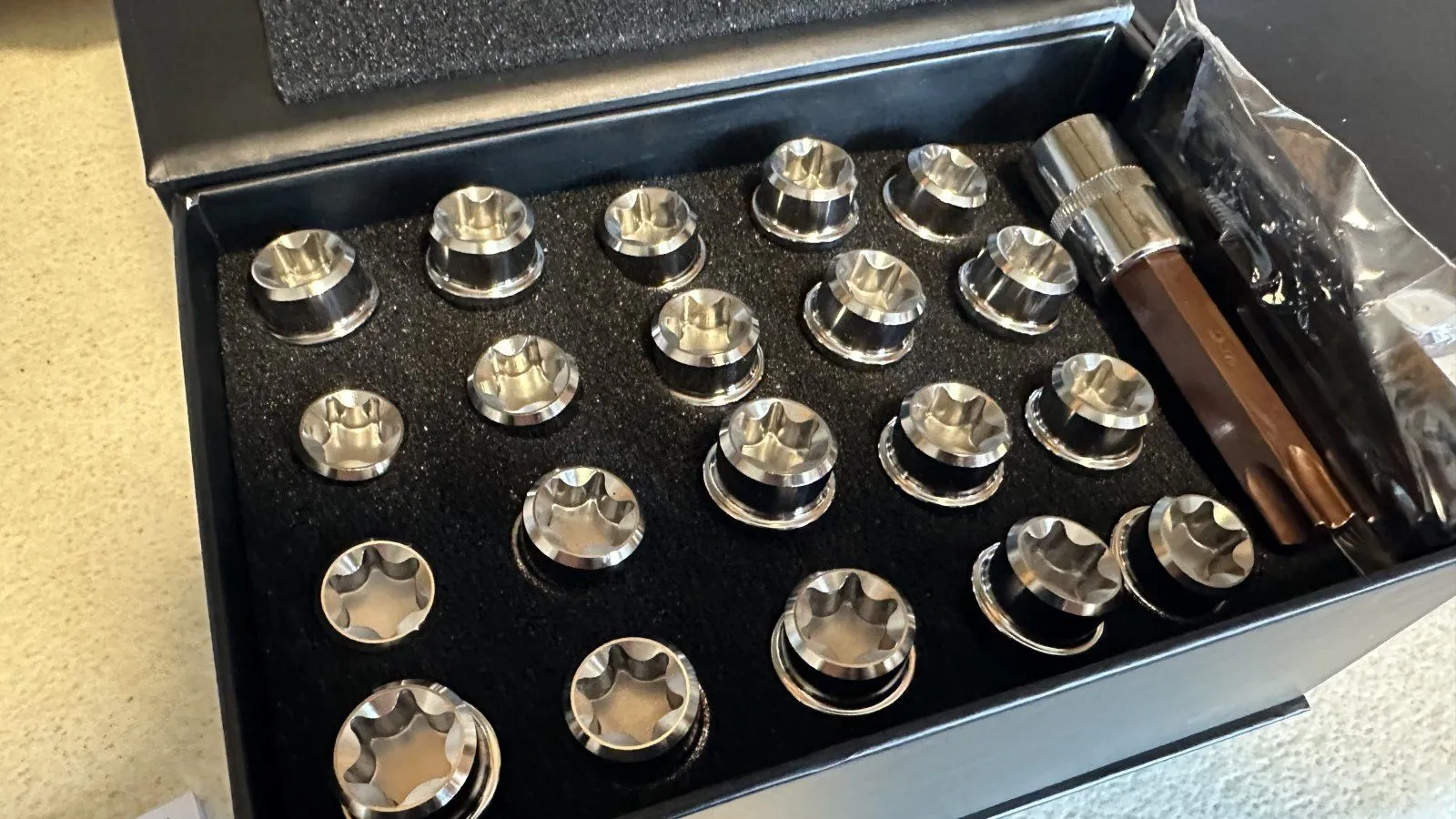 I'm going to get a set of torx head titanium lug bolts mostly because I can afford it, and I like the way they look. Whatever difference the few ounces of weight saved makes, that's just a bonus.
