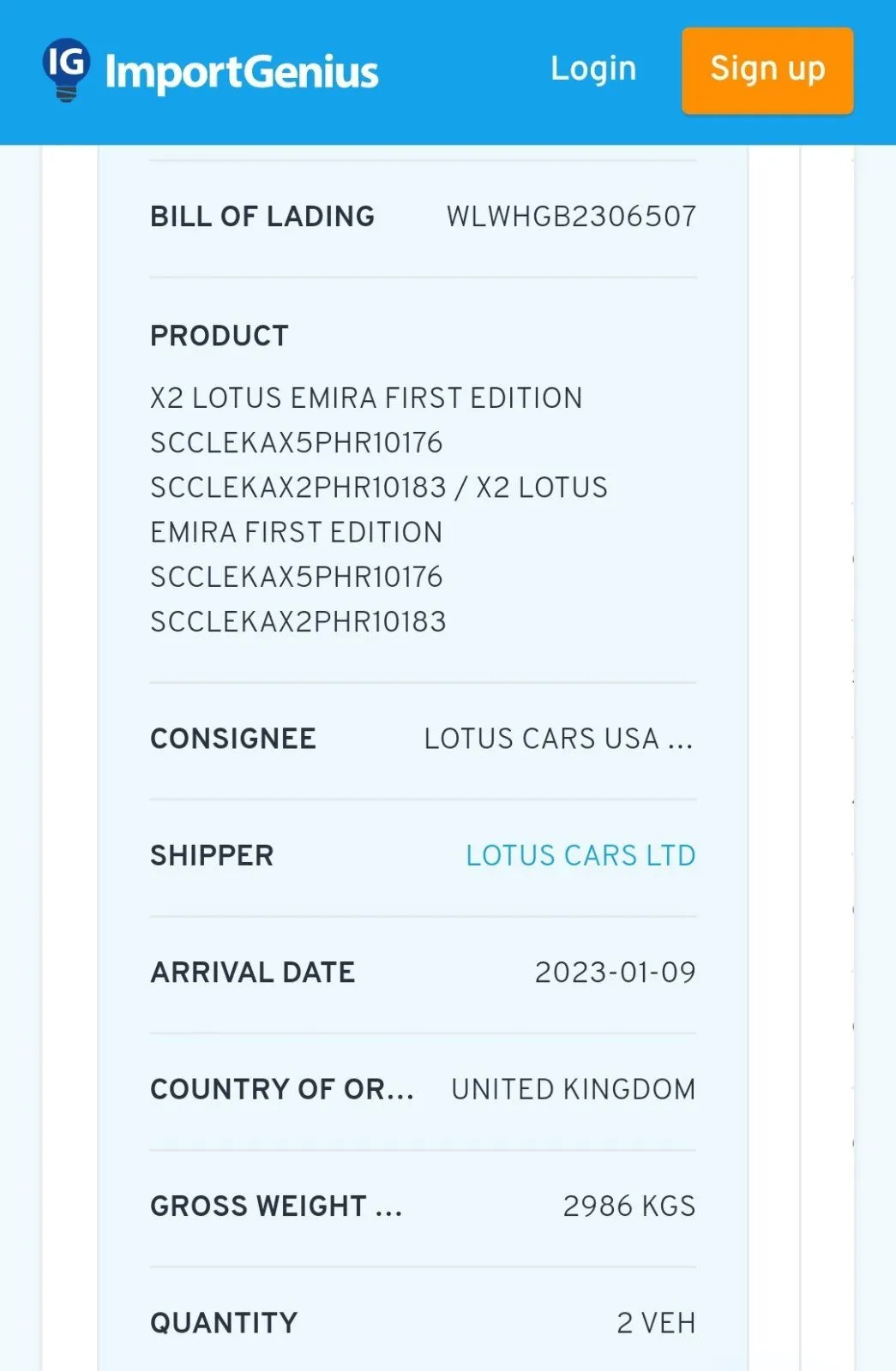 I've been monitoring shipping manifests. A couple more "Emira First Editions" arrived in Baltimore Maryland on 1/9/2023. But these appear to be 2023 cars meant for test drives or some other event. I'll leave it up to others to pester Lotus Cars USA about it.