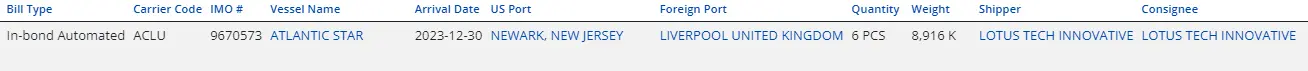 The consignee for these is Lotus themselves, not the Lotus Cars USA subsidiary.