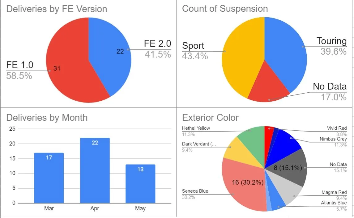 Going up to the dealership tomorrow morning for a conjugal visit. If I get any decent photos, I will be happy to share. For those trying to keep track: VIN: xxx1975, Initial deposit July 15, 2022, build submitted Aug 29, 2023, off-loaded Newark, NJ, April, 7 2024 (thx Nova!) and Baltimore PDI completed May 3rd, 2024 and dealership arrival May 9th. Clearly a beneficiary of the LIFO parking/staging strategy at Lotus!