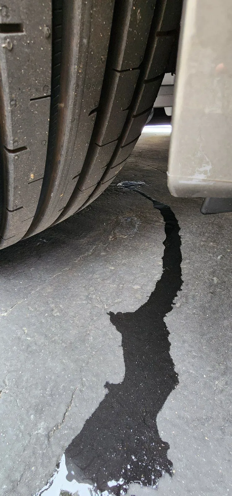 Just noticed this bit of water pooling out by the front tire when I parked after a drive. (Anything to be concerned about?) About 200 miles on the car